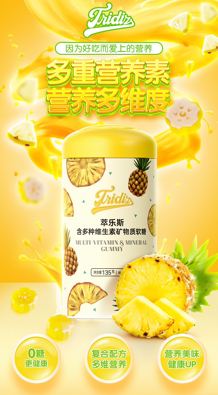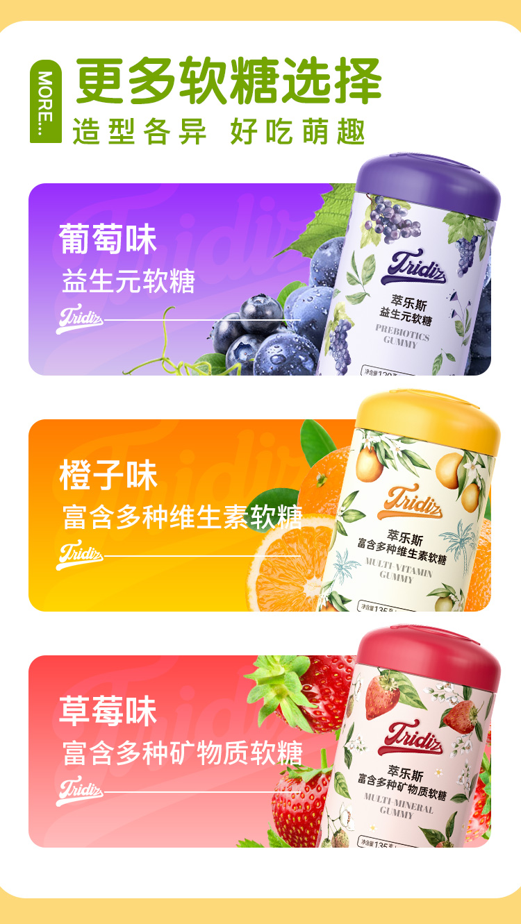 迪辅乐萃乐斯儿童复合维生素软糖补vc宝宝维生素c软糖钙铁锌45粒