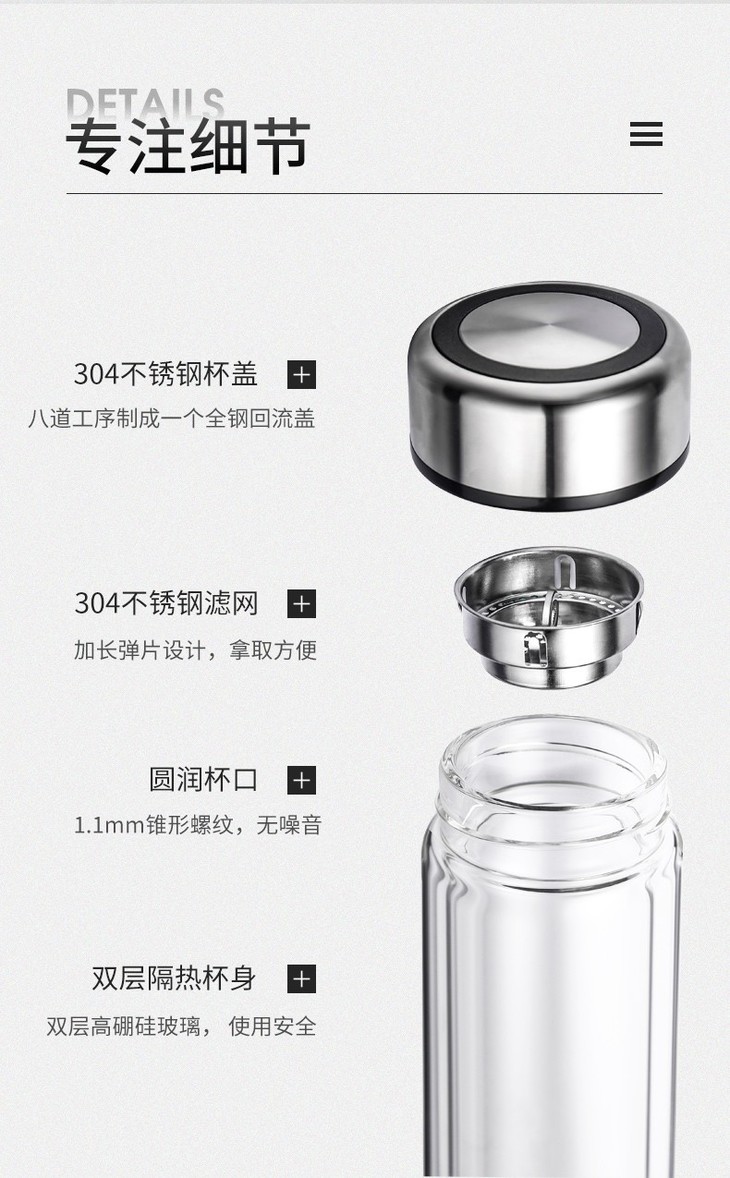 茶马仕 T5双层系列 玻璃杯双层便携家用茶杯