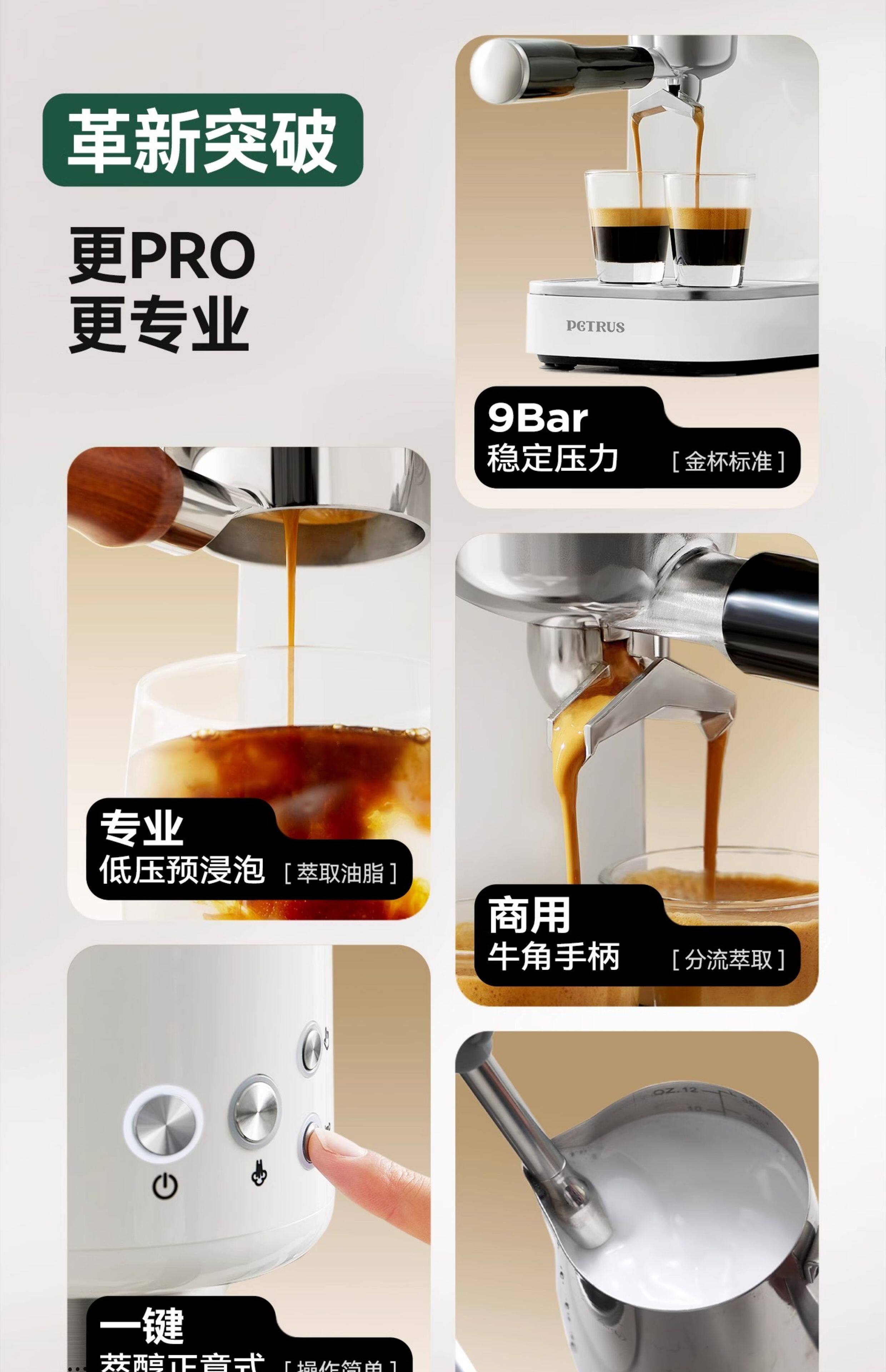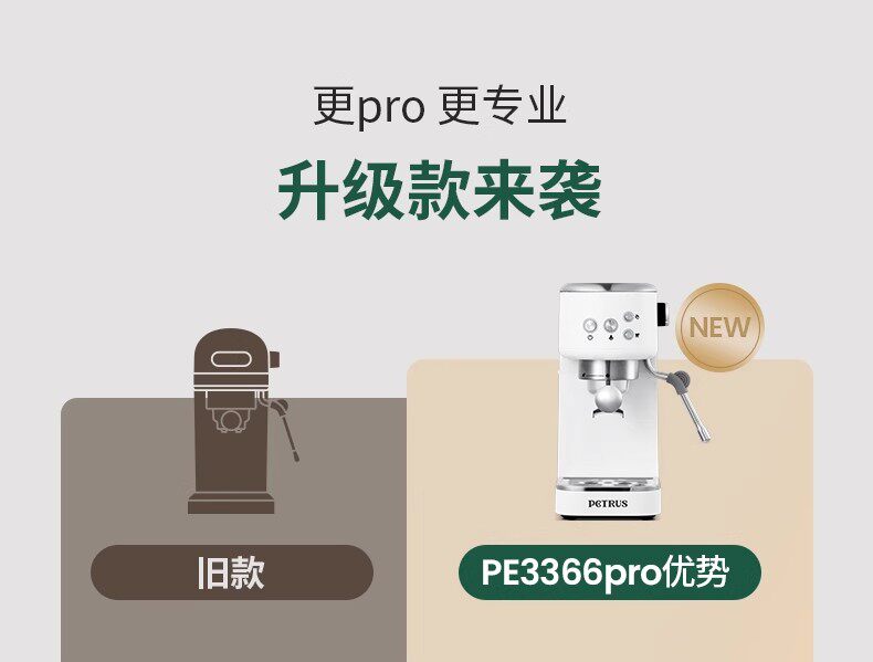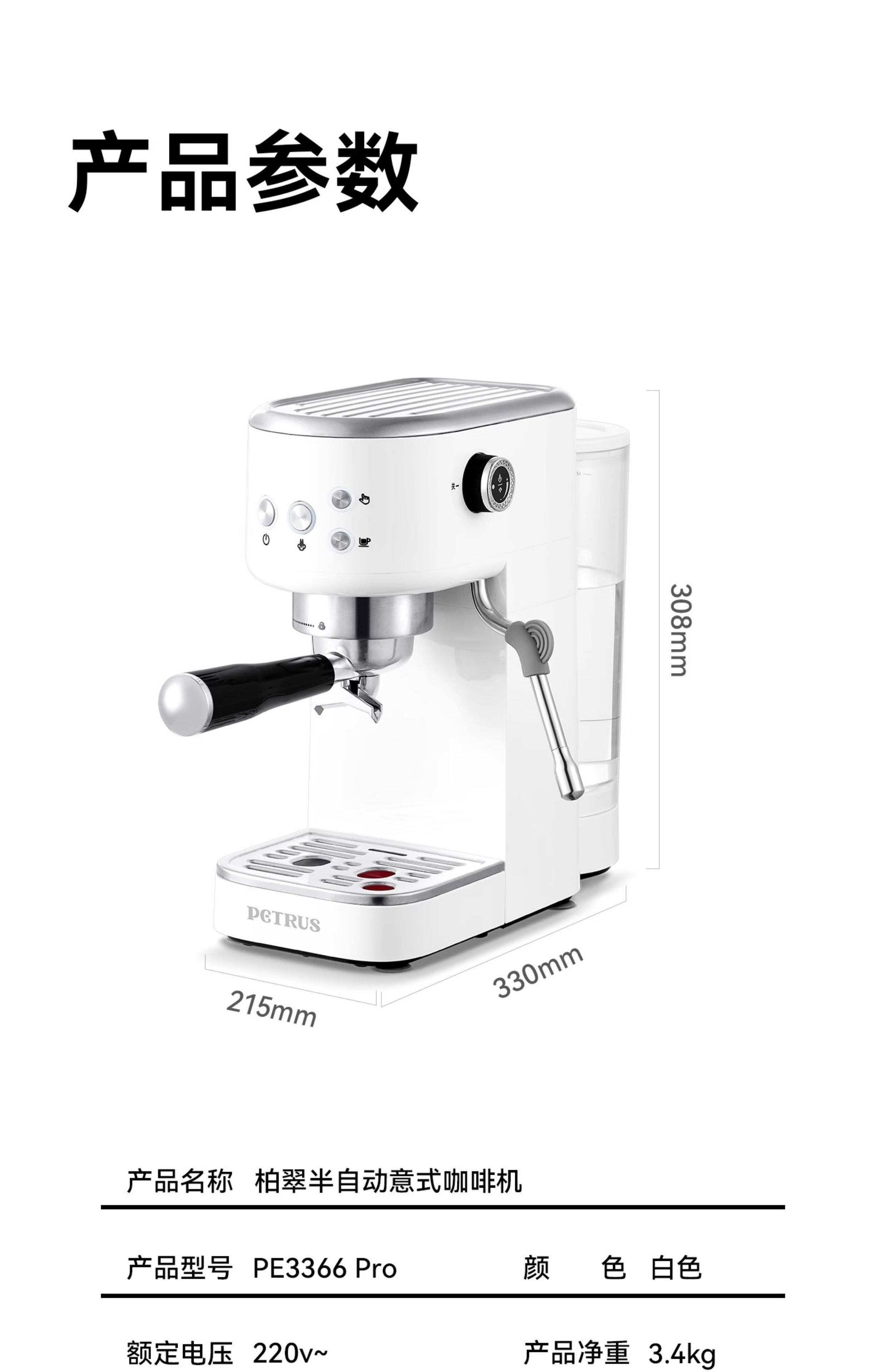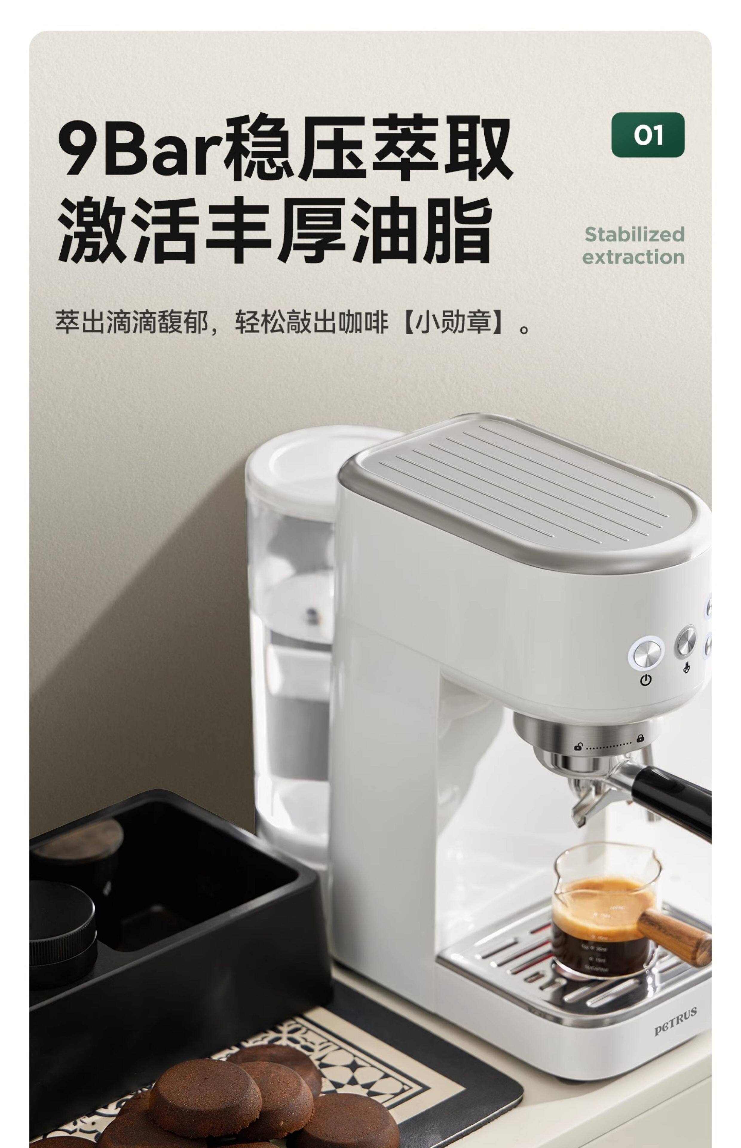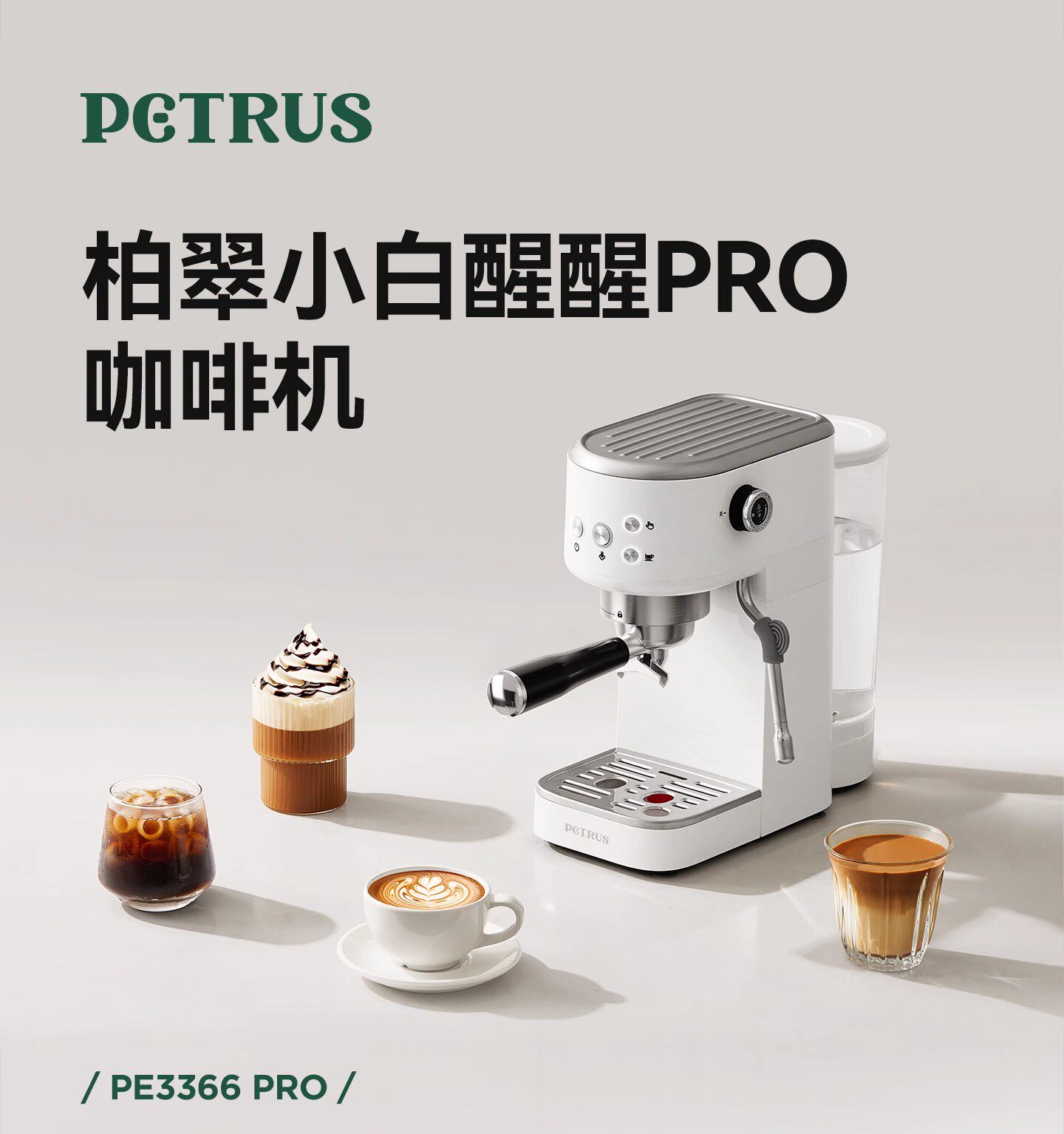 柏翠(petrus)咖啡机意式家用小型小白醒醒Pro复古迷你办公室用全半自动浓缩打奶泡一体机 PE3366Pro 节日送好物 小白醒醒Pro