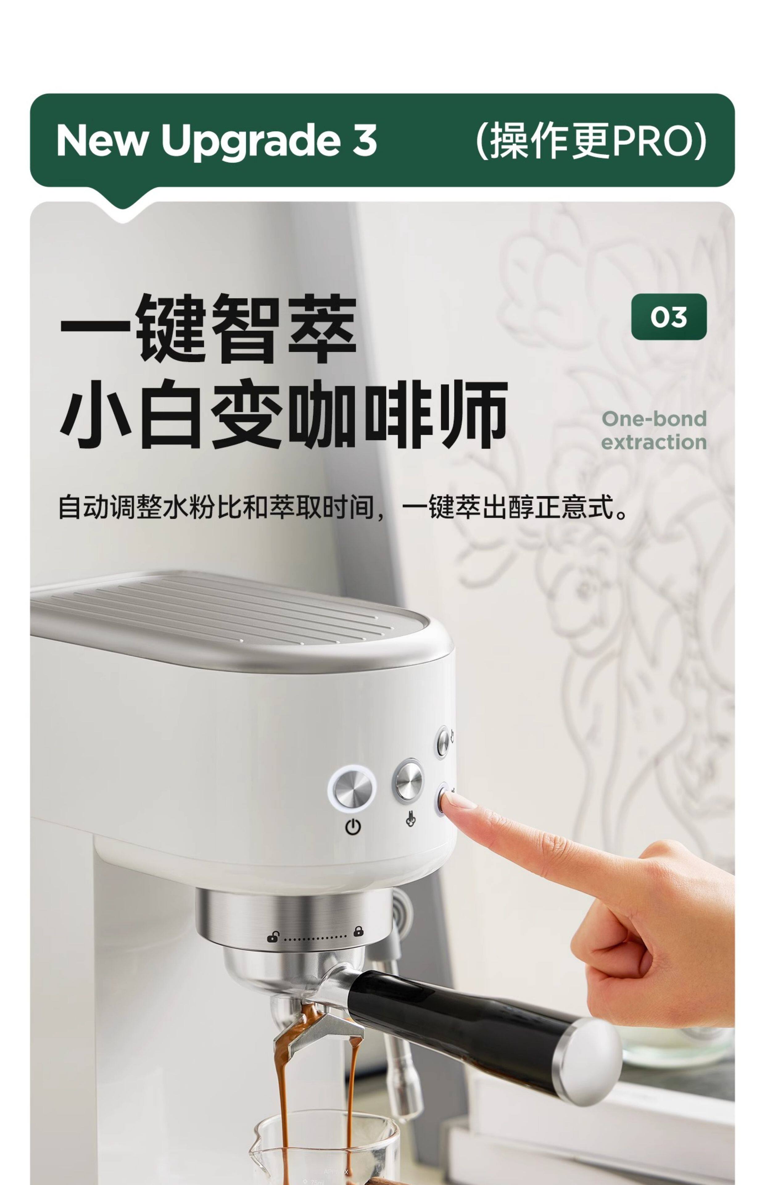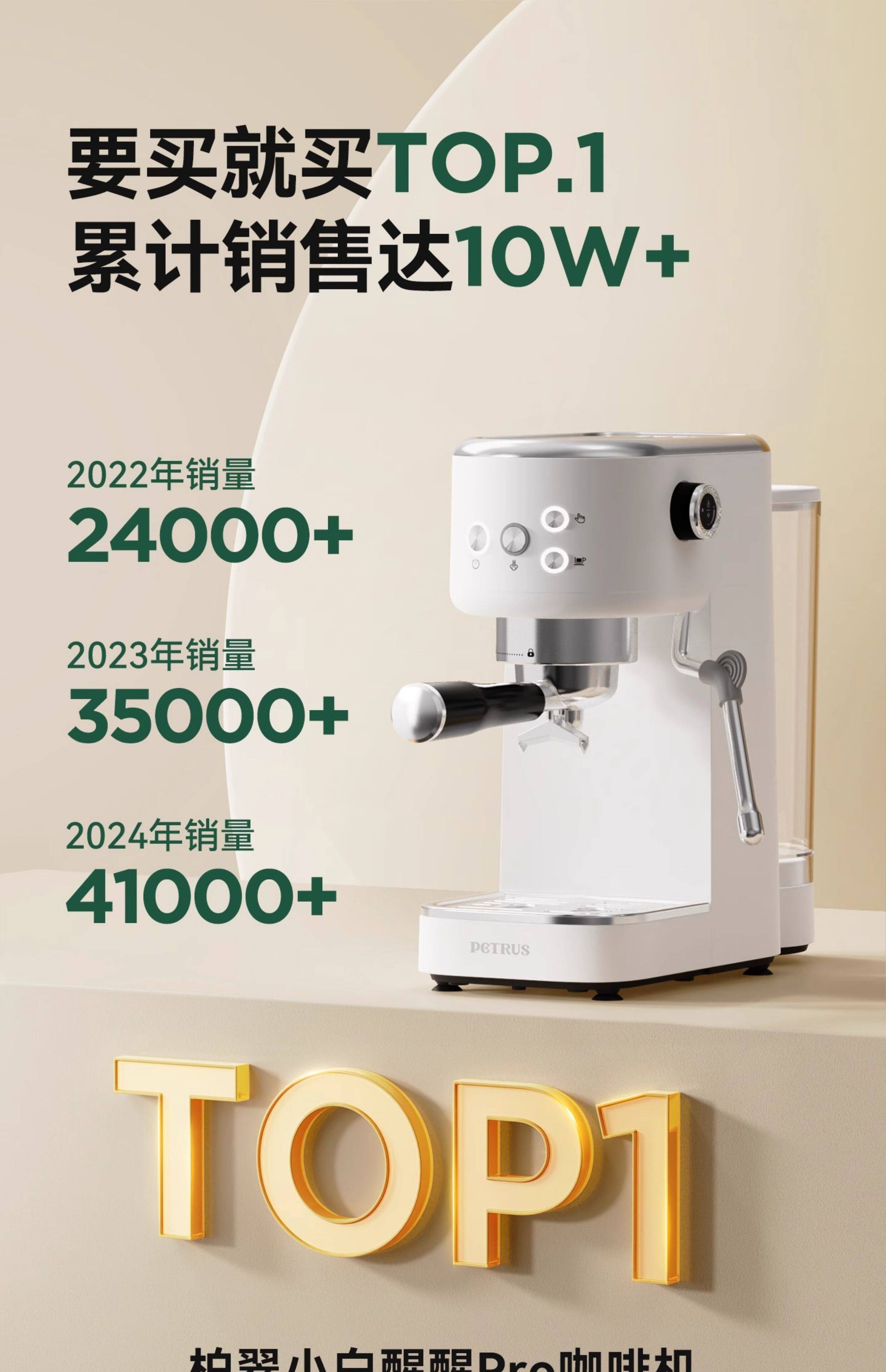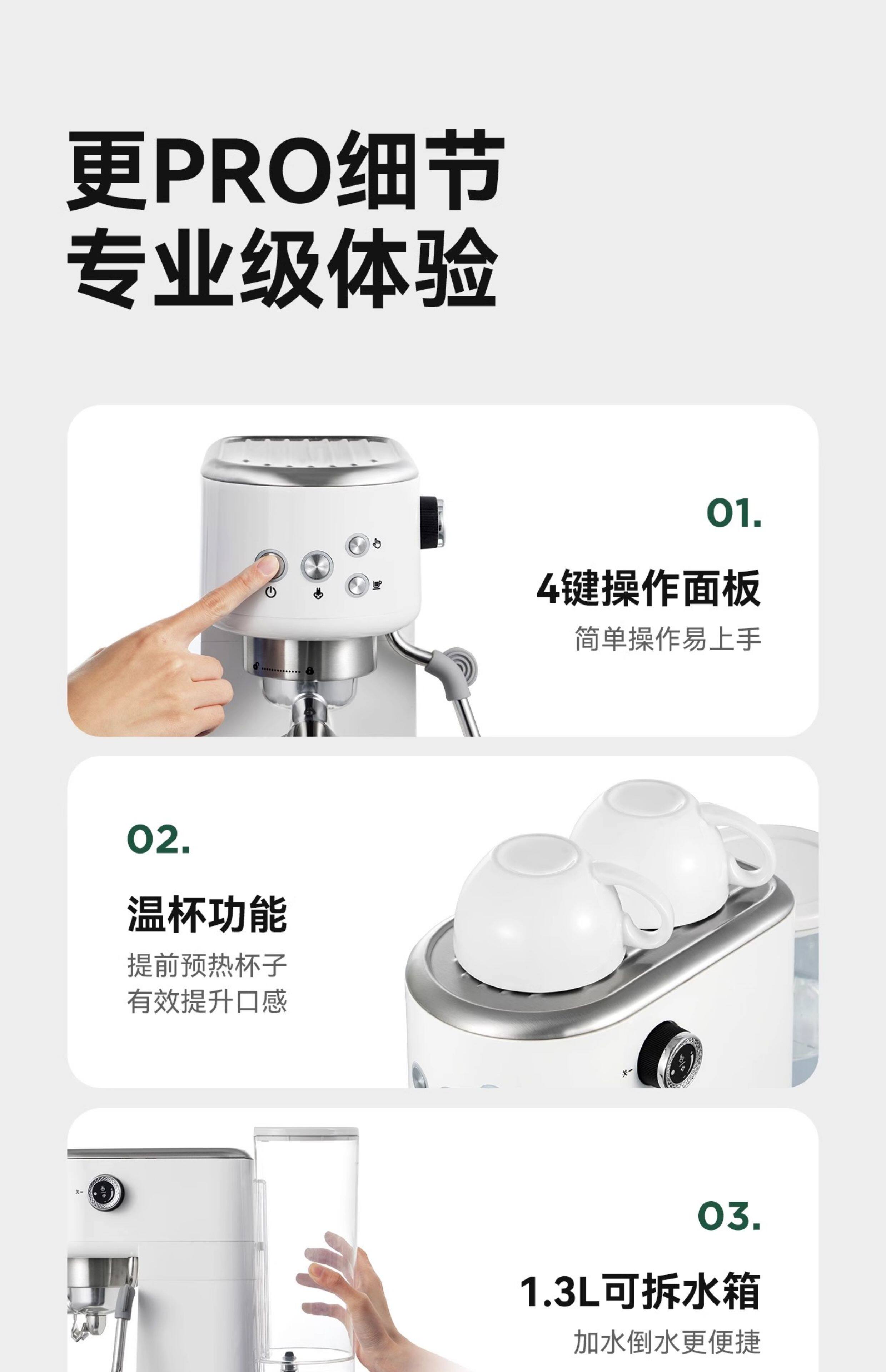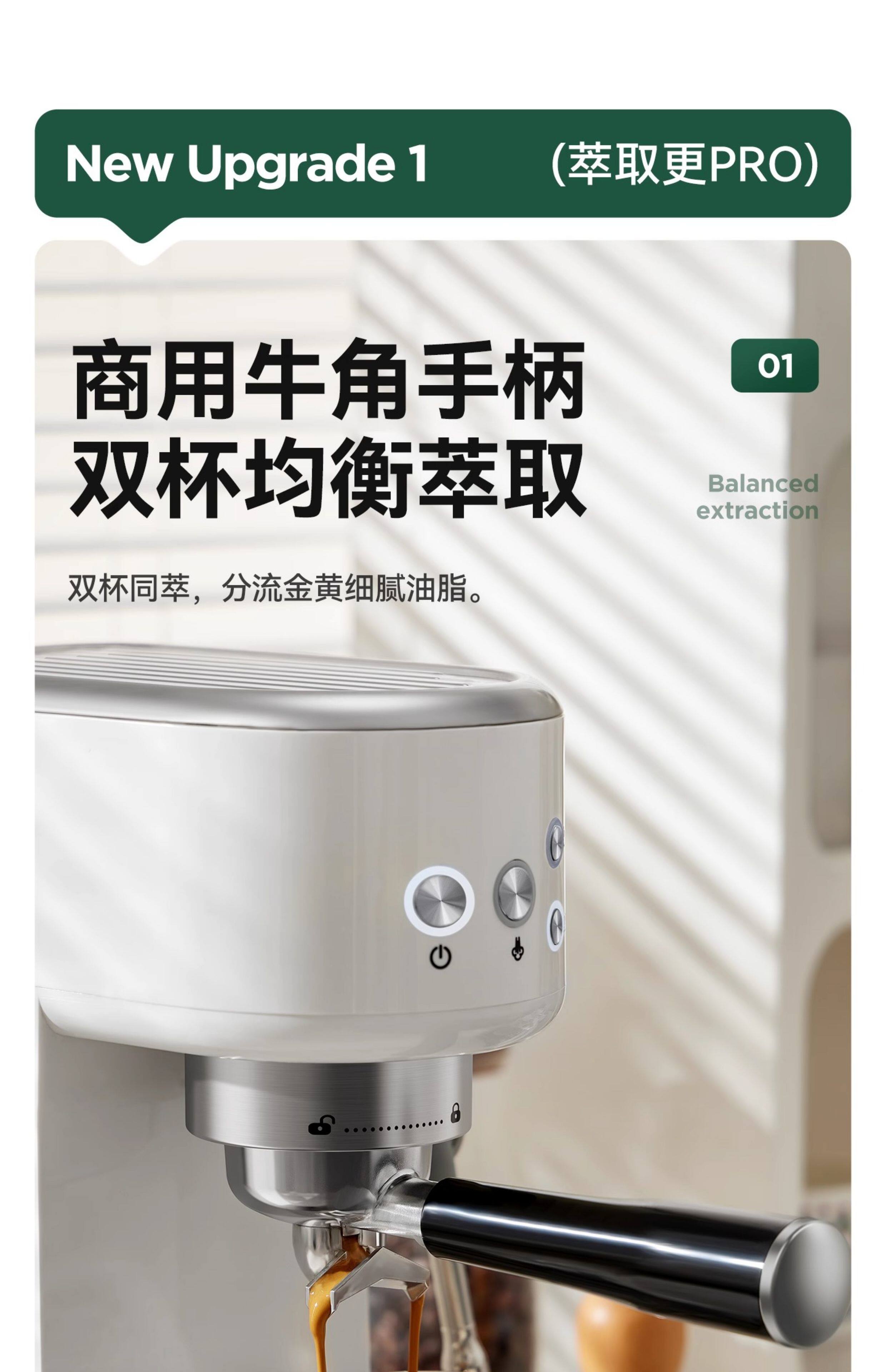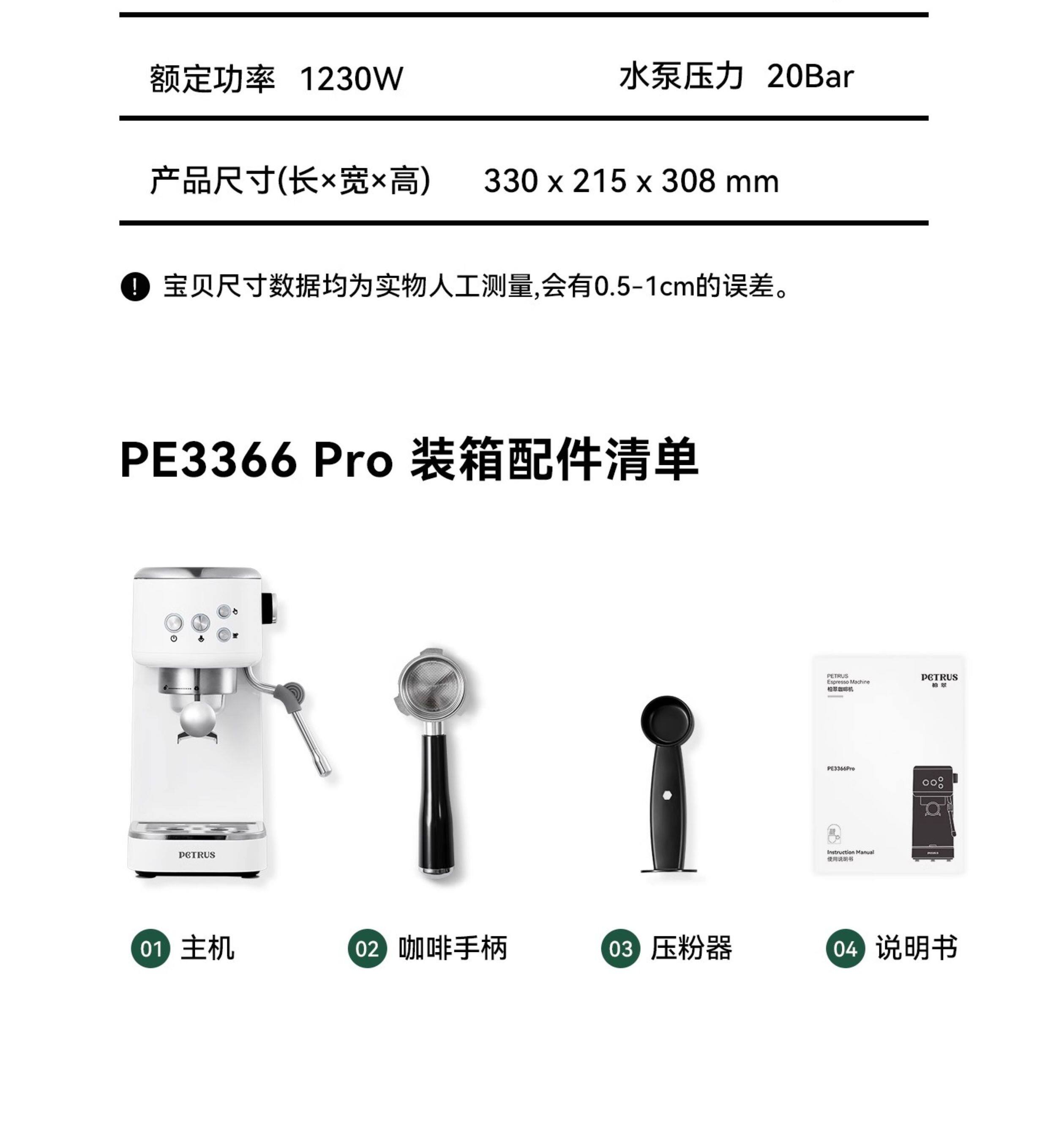 柏翠(petrus)咖啡机意式家用小型小白醒醒Pro复古迷你办公室用全半自动浓缩打奶泡一体机 PE3366Pro 节日送好物 小白醒醒Pro