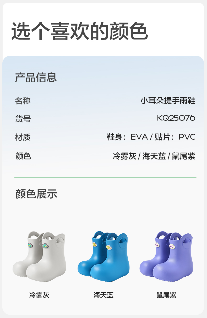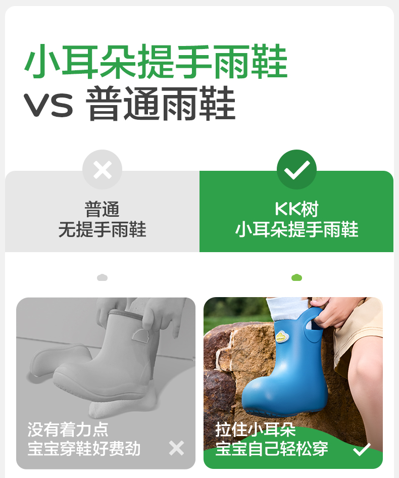 KK树小耳朵儿童雨鞋男童女孩防滑超轻宝宝雨靴小孩水鞋2025新款小耳朵提手雨鞋