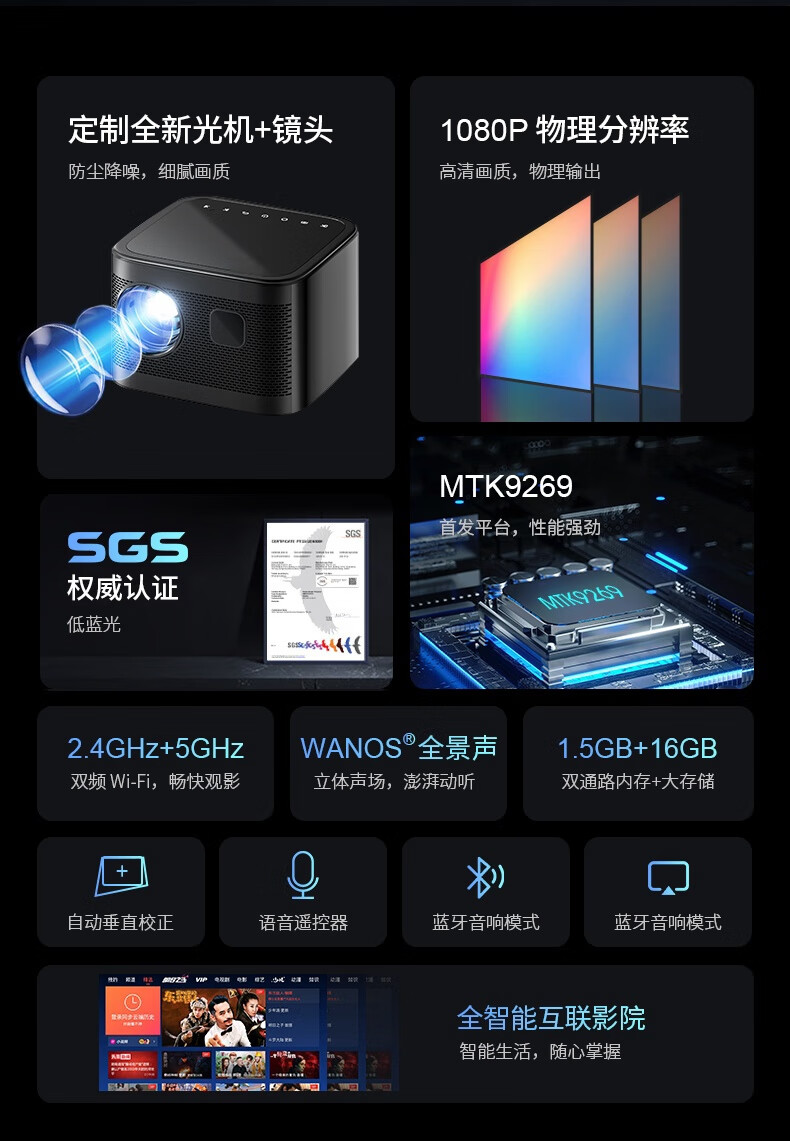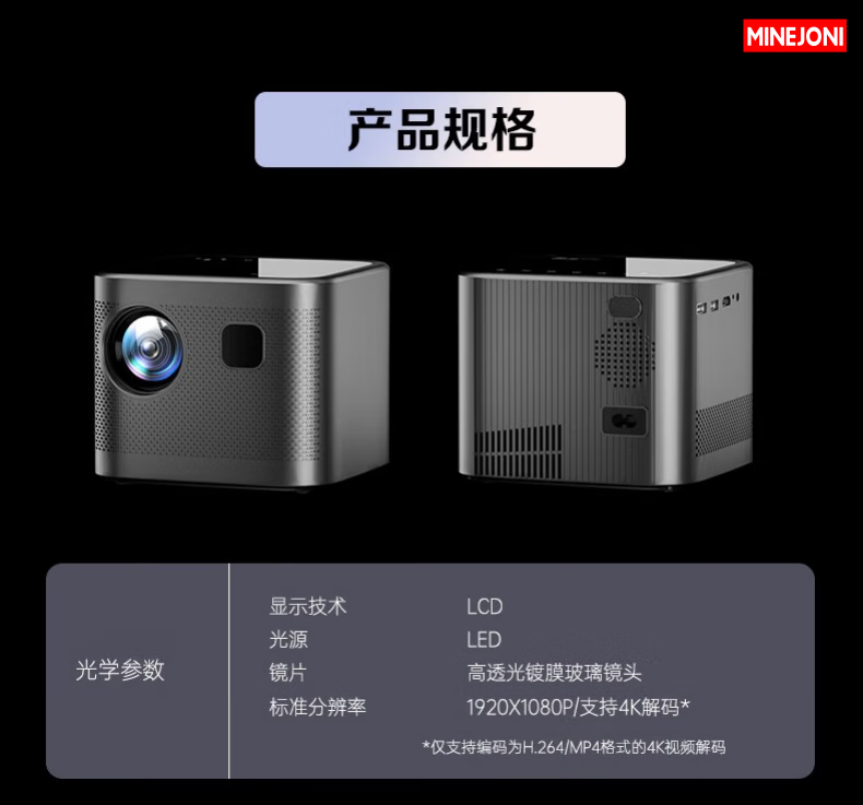MINEJONIT12投影仪2025新款白天高亮投影仪家用超高清4K投墙商用办公会议家庭影院卧室客厅小型户外KTV一体 黑色