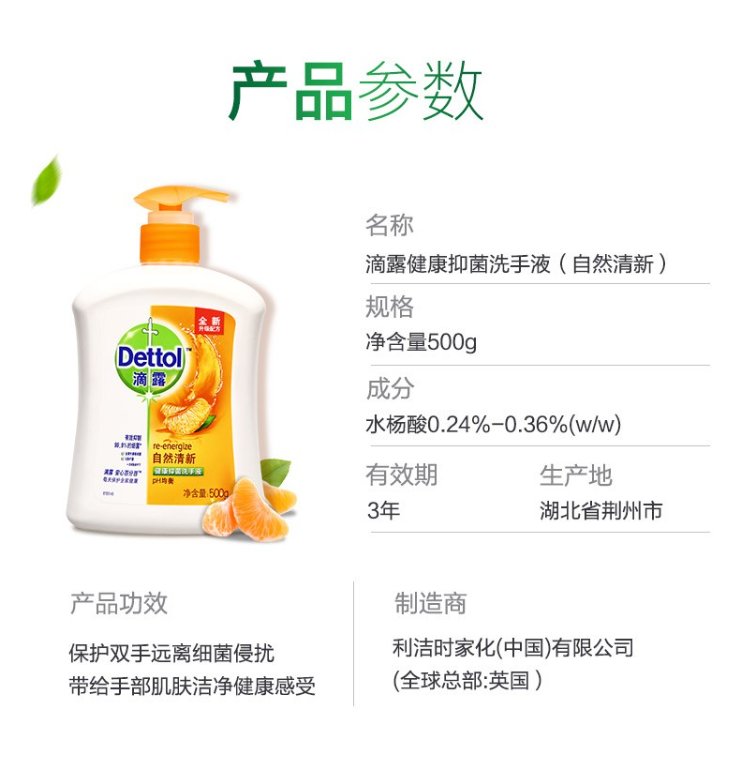 滴露抑菌洗手液自然清新500克