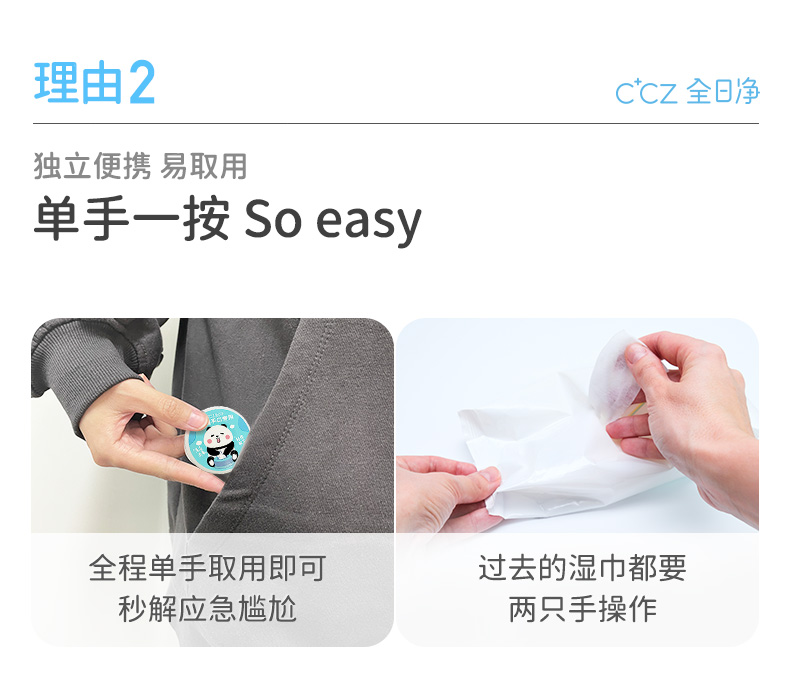 CCZ全日净一次性干湿分离孕婴湿巾儿童手口专用消毒便携按压湿巾