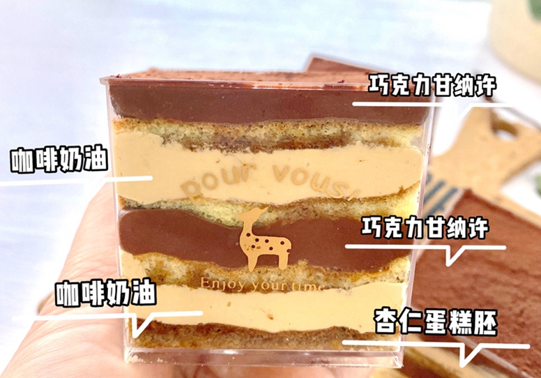 料叠达8层,由杏仁海绵蛋糕,巧克力甘纳许,咖啡奶油,层层叠叠的丰富口感,让人吃完欲罢不能,你想试试么
