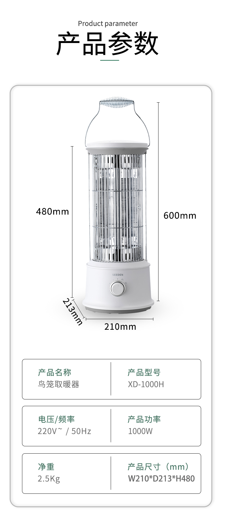 【小家电】西点鸟笼电暖器XD-1000H HF