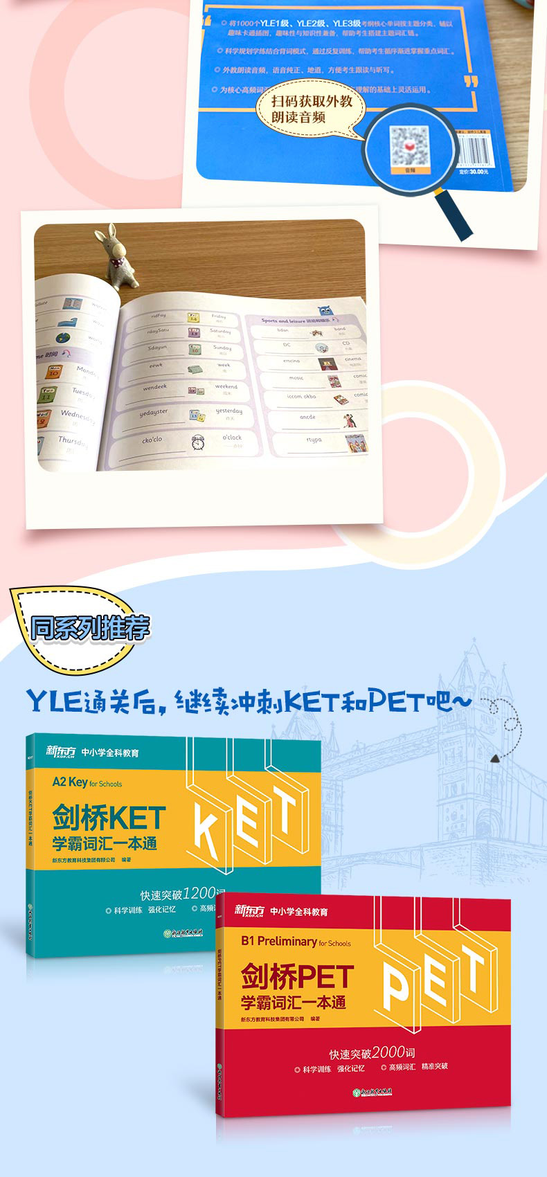 剑桥YLE学霸词汇一本通 剑桥少儿英语 本系列图书为新东方YLE、KET、PET课堂用书,学练结合背单词,逐级突破考试必会词,配图辅助记忆,赠英式发音外教朗读音频。