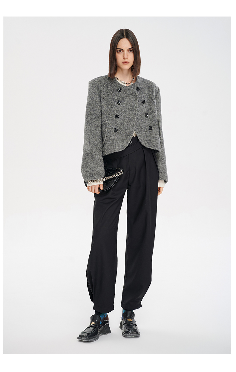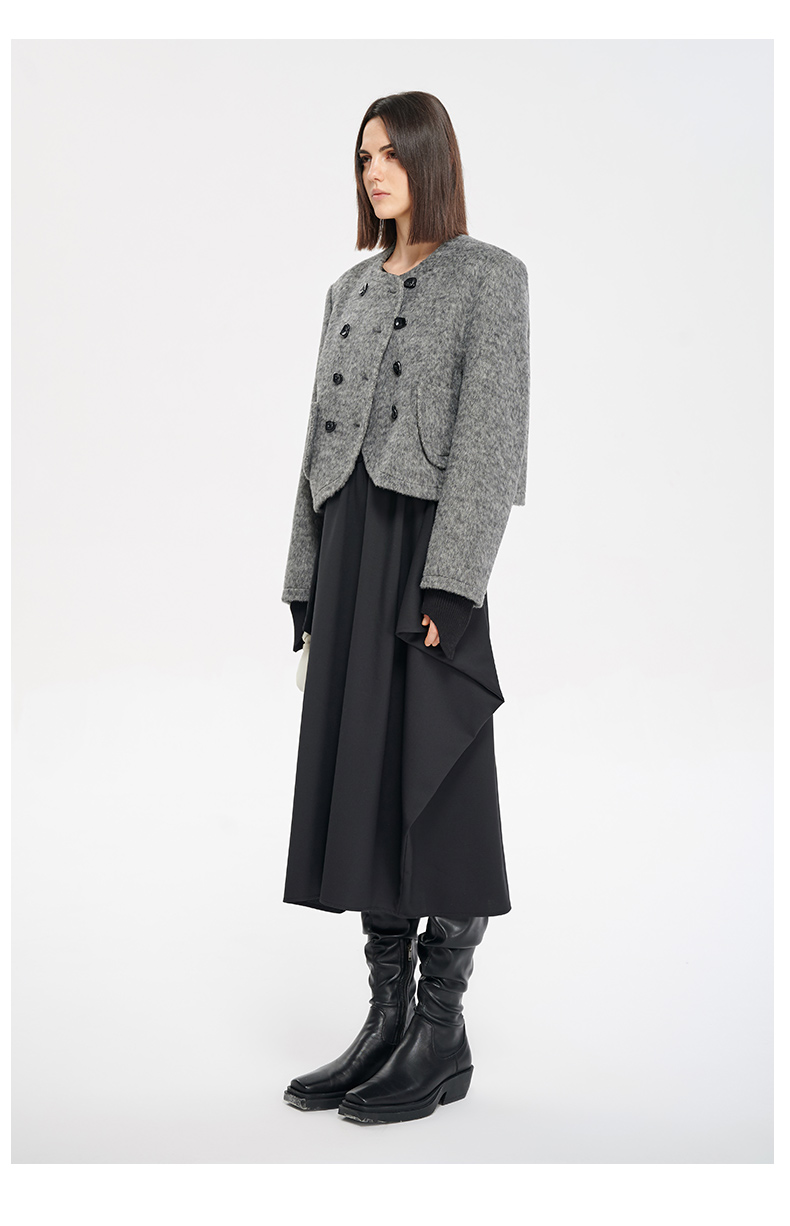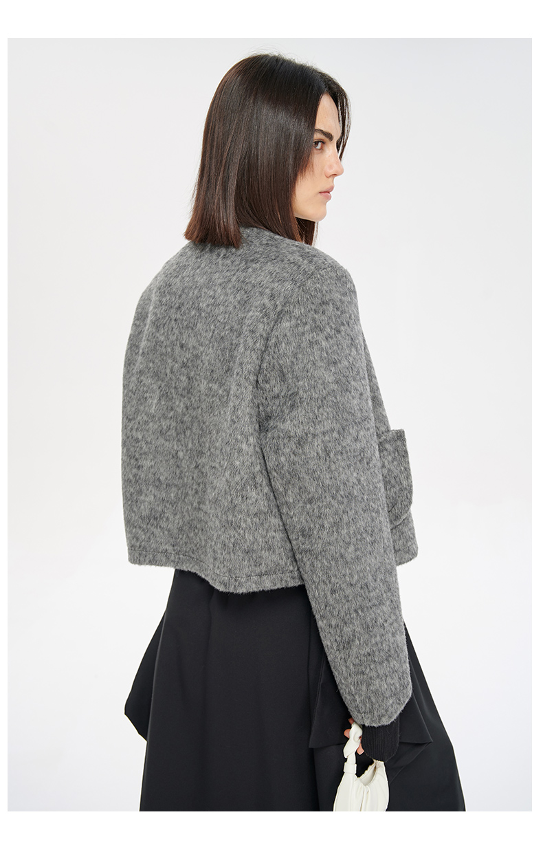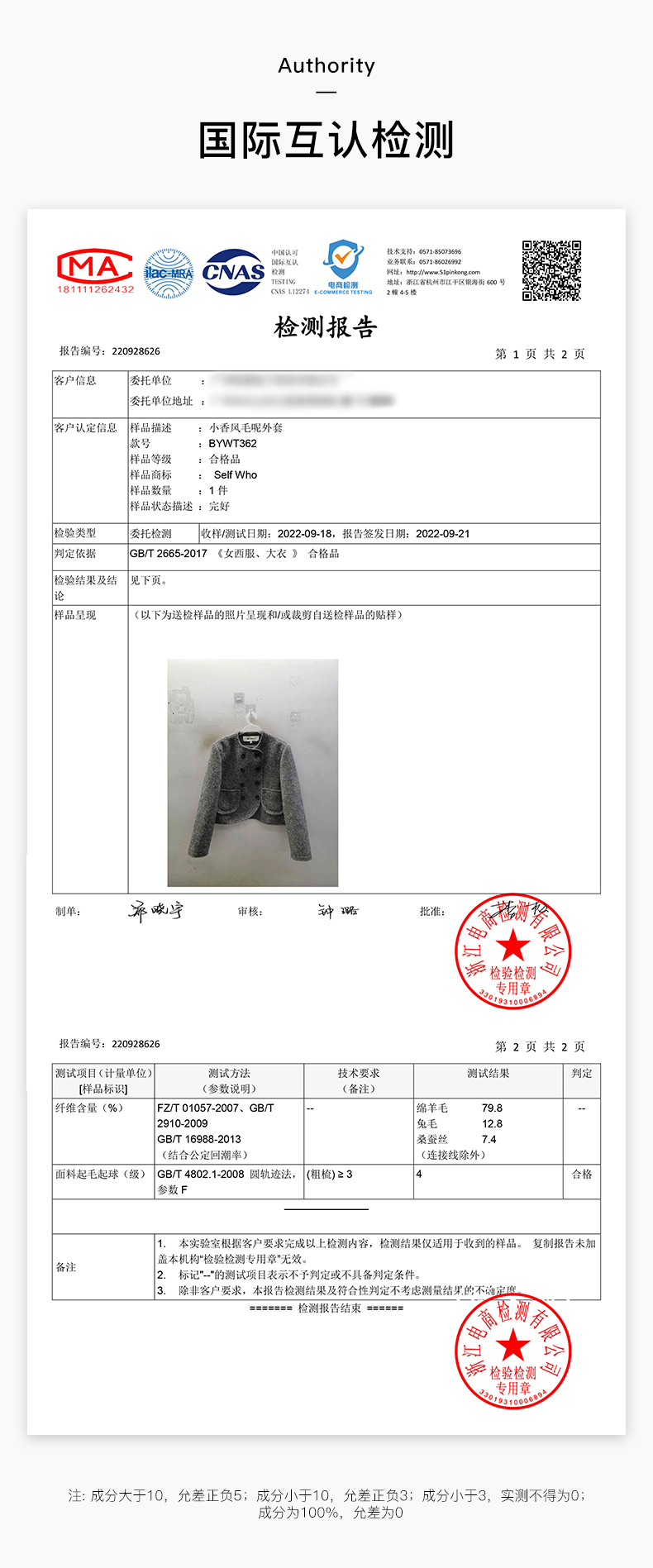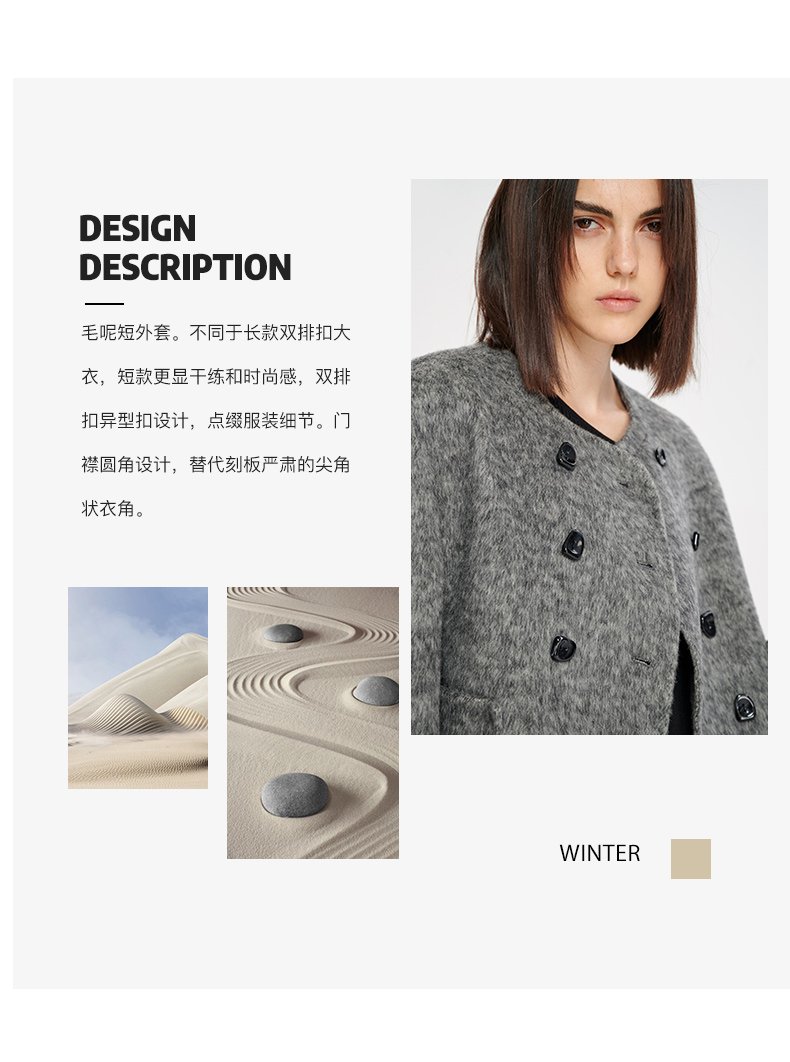 Self Who桑蚕丝羊毛双面毛呢子短外套女防寒保暖宽松轻奢2022冬