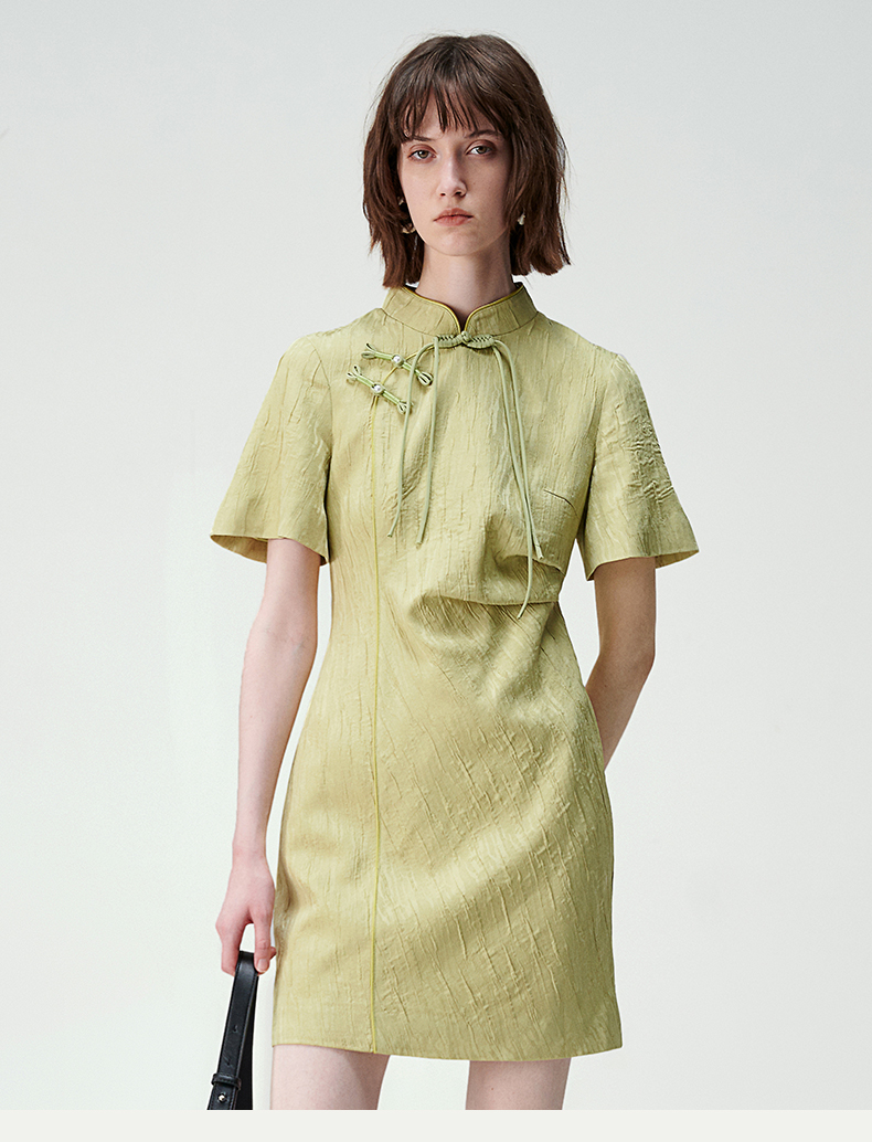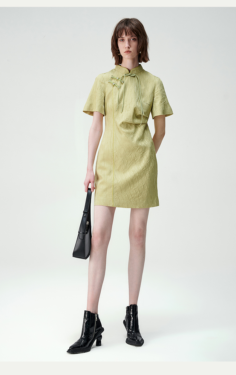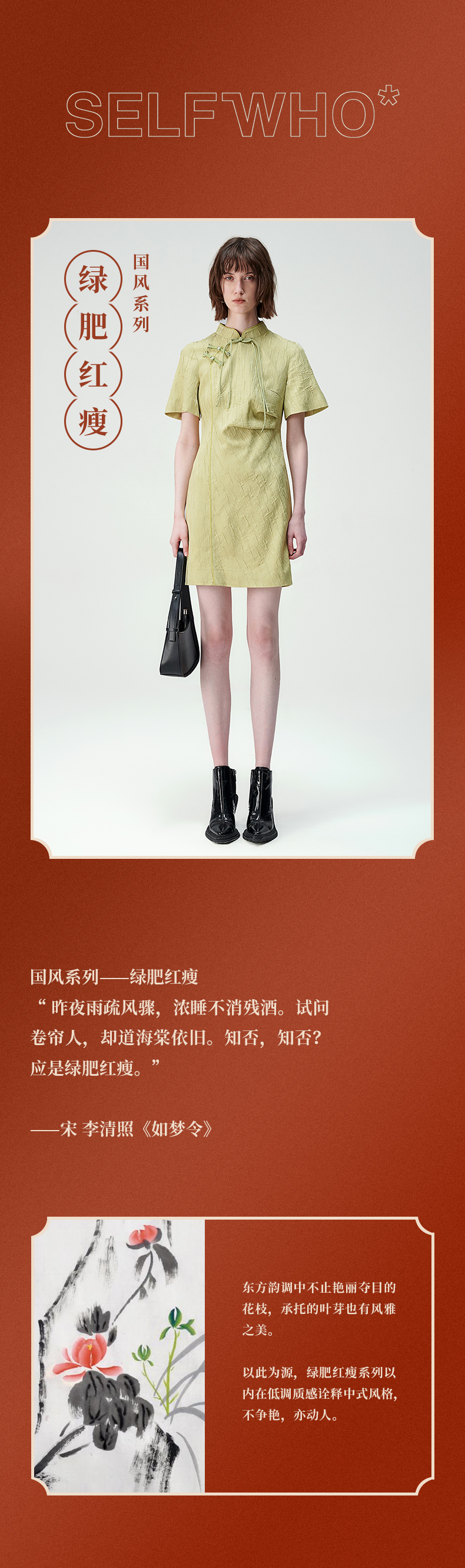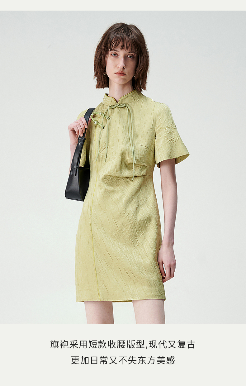 SELFWHO 新中式国风旗袍连衣裙2024新款春复古盘扣收腰设计感裙子