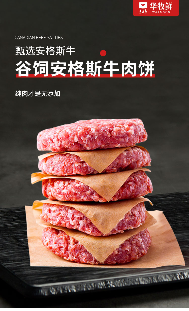 【买10片送2片 到手12片】华牧鲜安格斯原切牛肉饼 80g/片 赠:黑椒酱80g*2袋