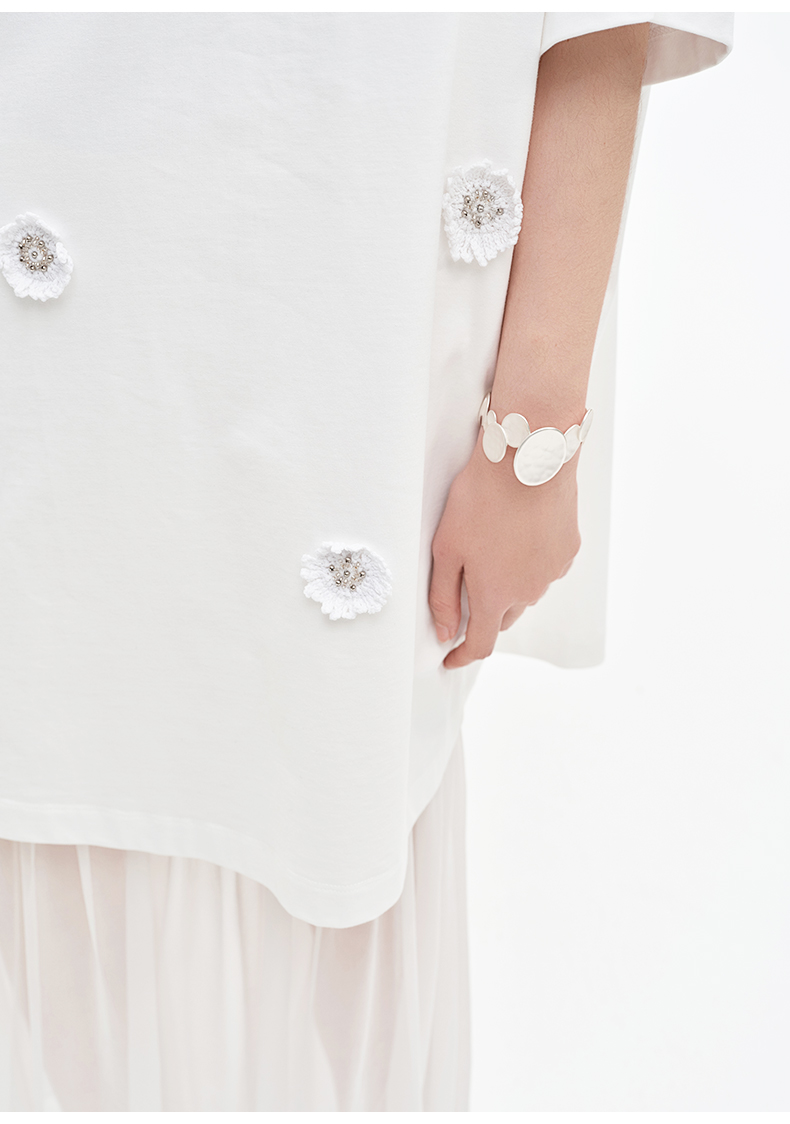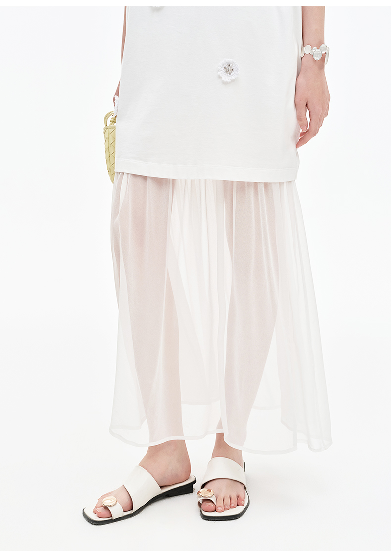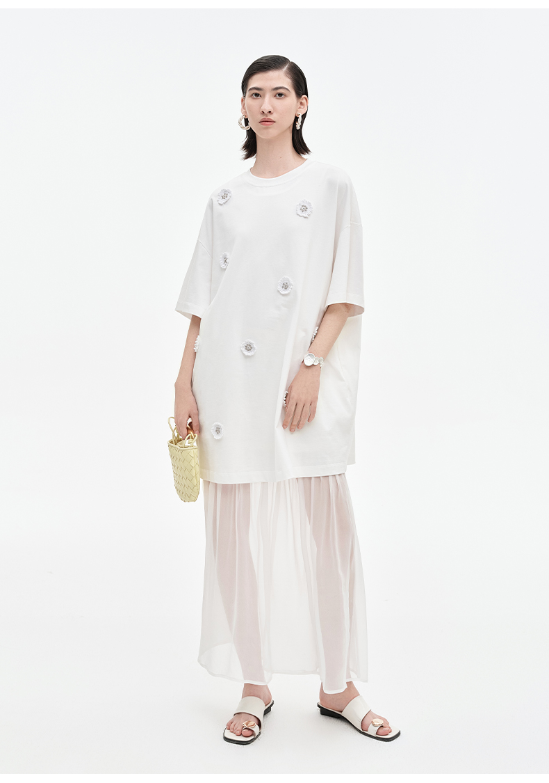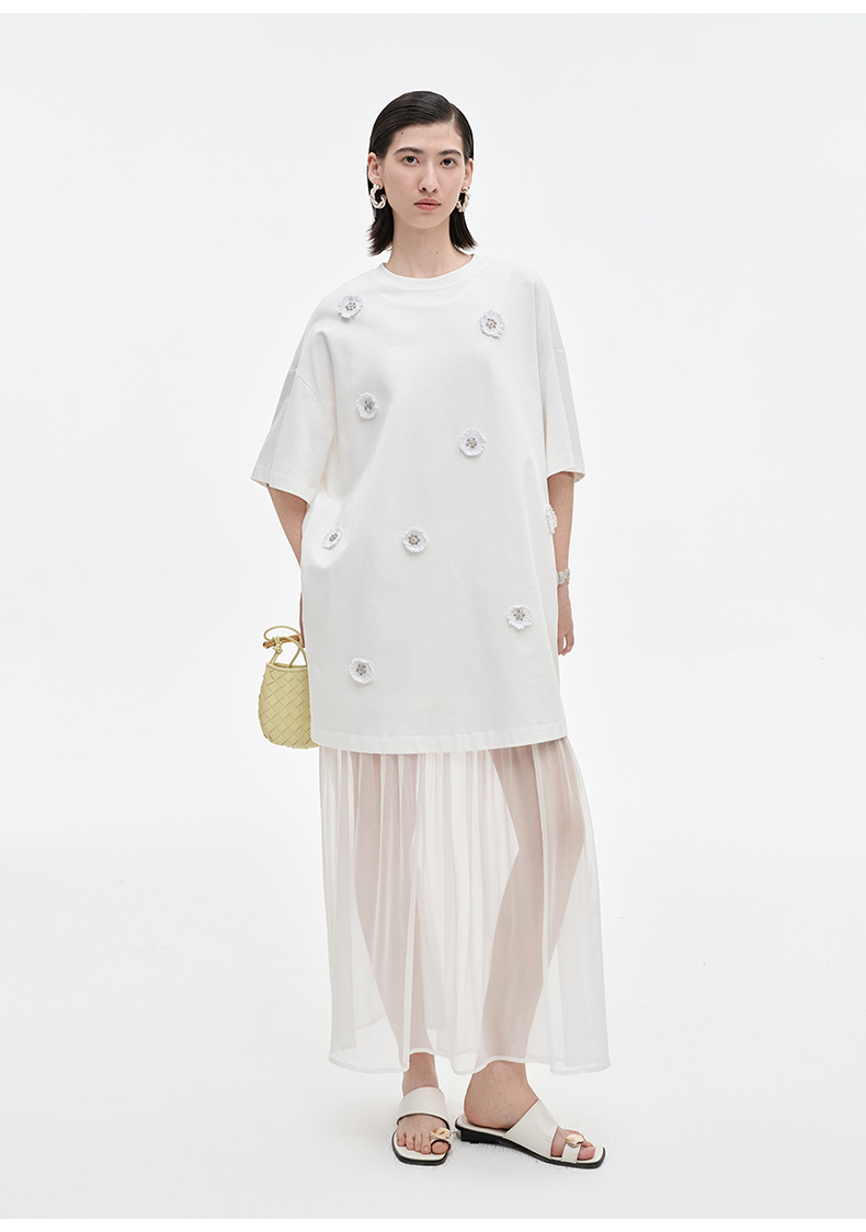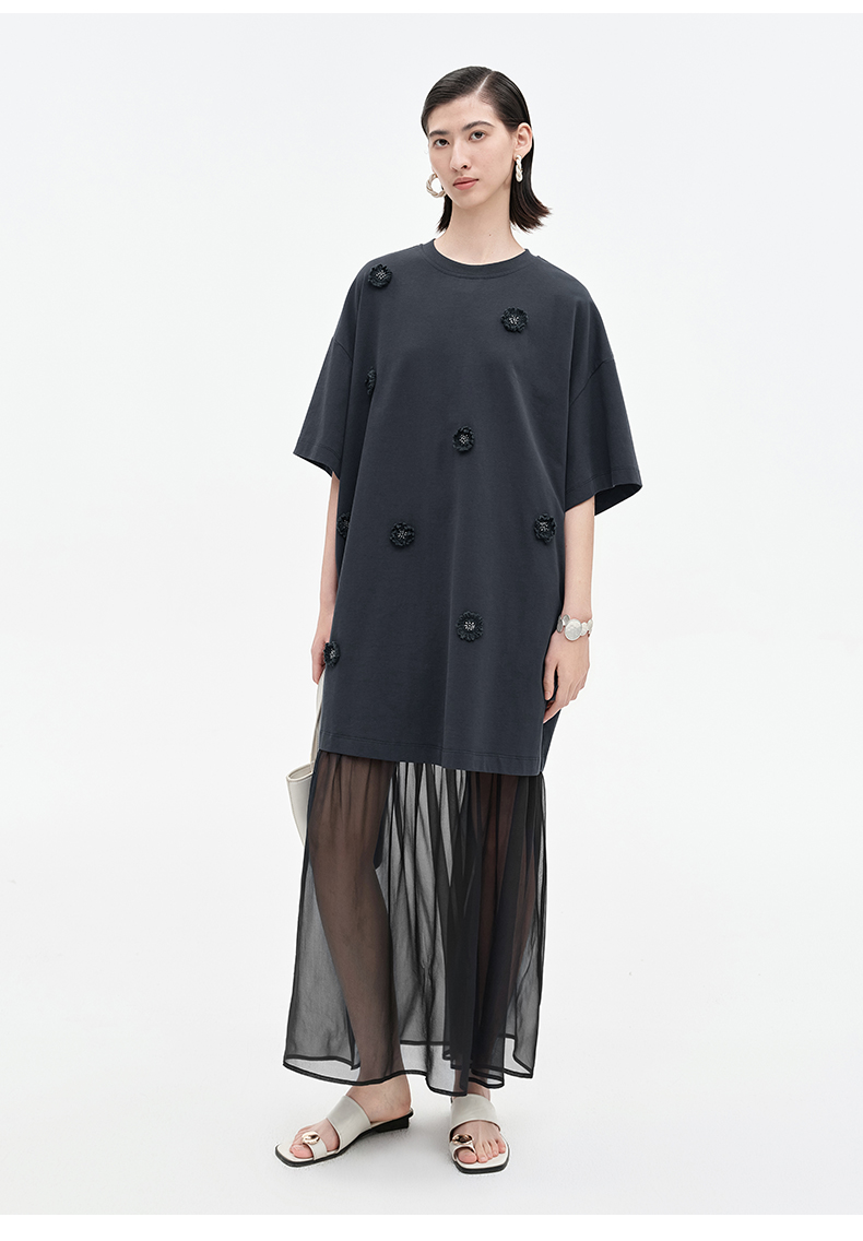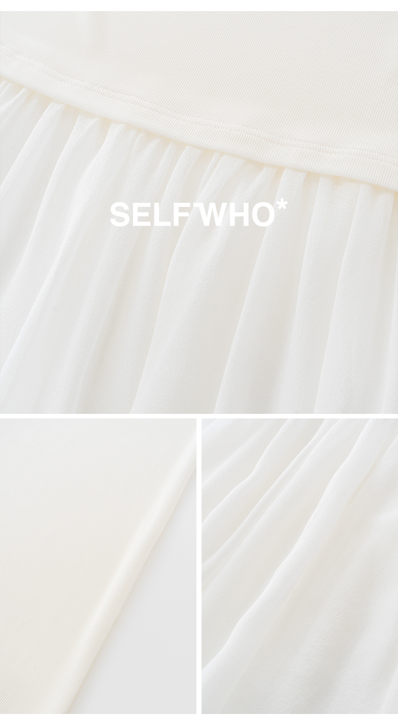 SELFWHO醋酯混纺梭织拼接连衣裙女2025夏季新款宽松两件套T恤裙子