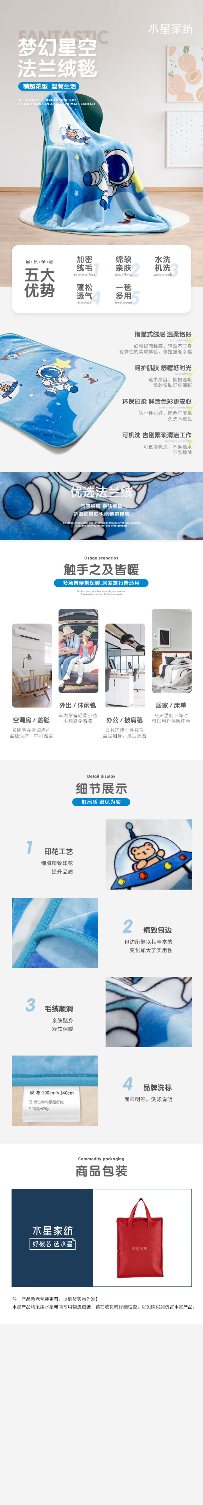 水星家纺 梦幻星空法兰绒毯 100cm×140cm 122978