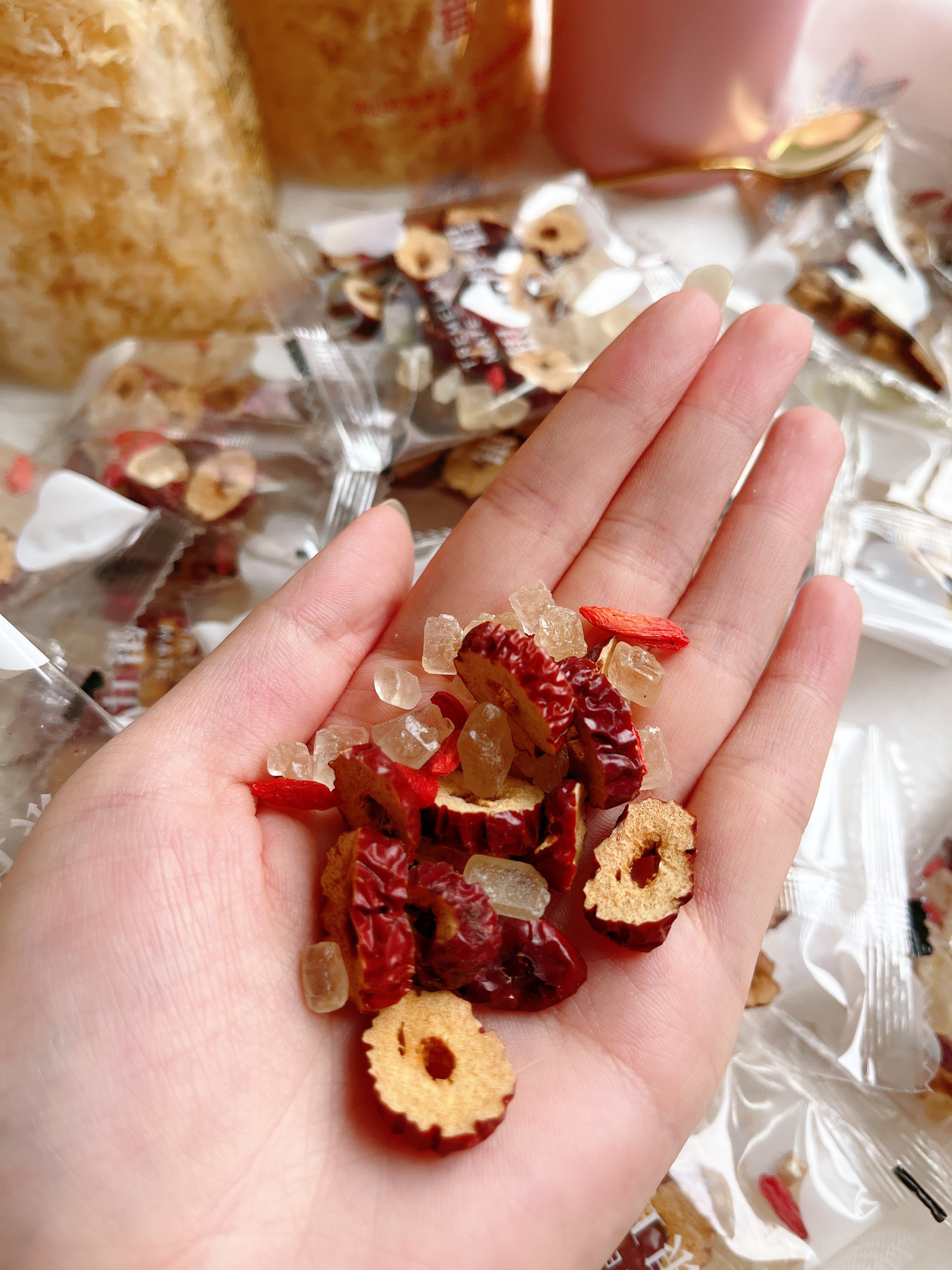 口感软糯香甜,搭配红枣、枸杞、莲子更美颜