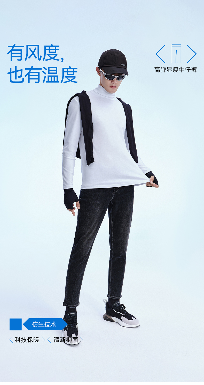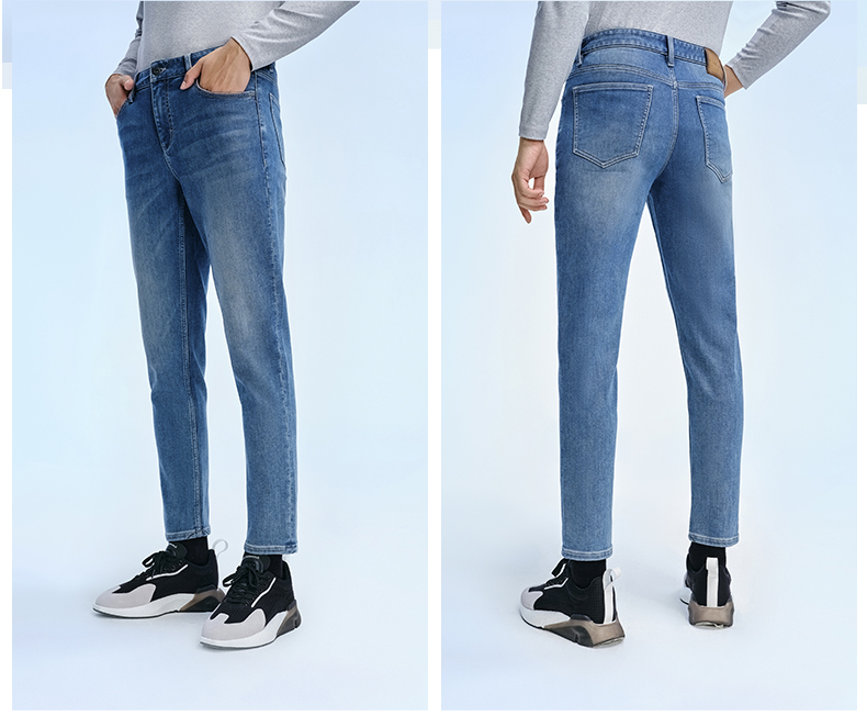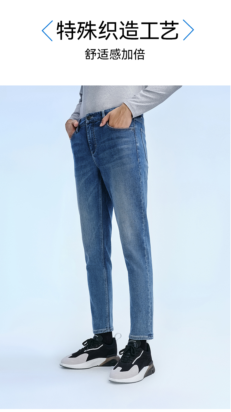 拇指白小牛男士随身暖锥形牛仔长裤无限系列