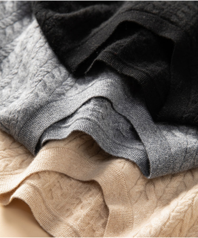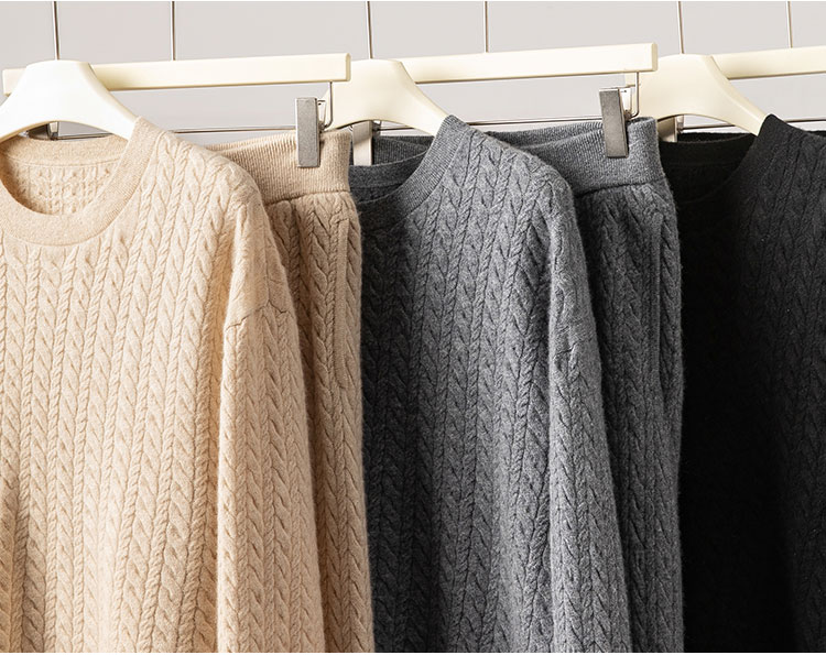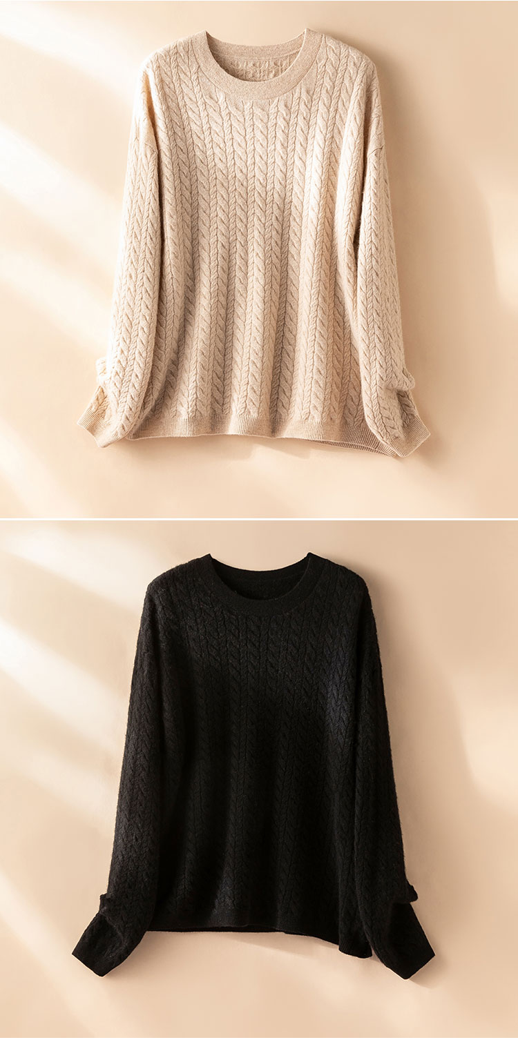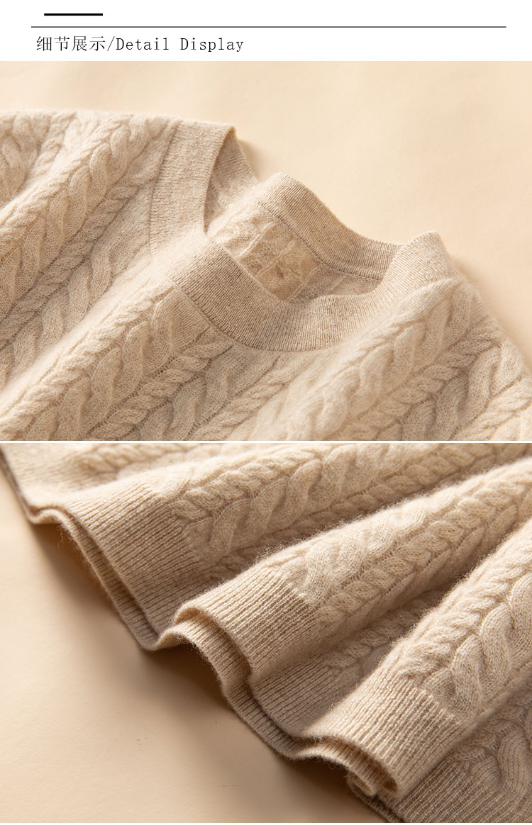 一步到位~100纯山羊绒衫女重工绞花圆领针织打底毛衣CYR250426