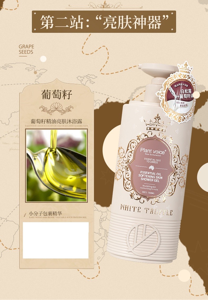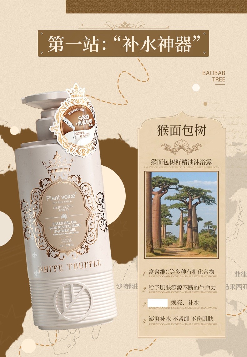 植物语录 白松露系列 猴面包树精油嫩肤 葡萄籽油精油亮肤 沐浴露750ml