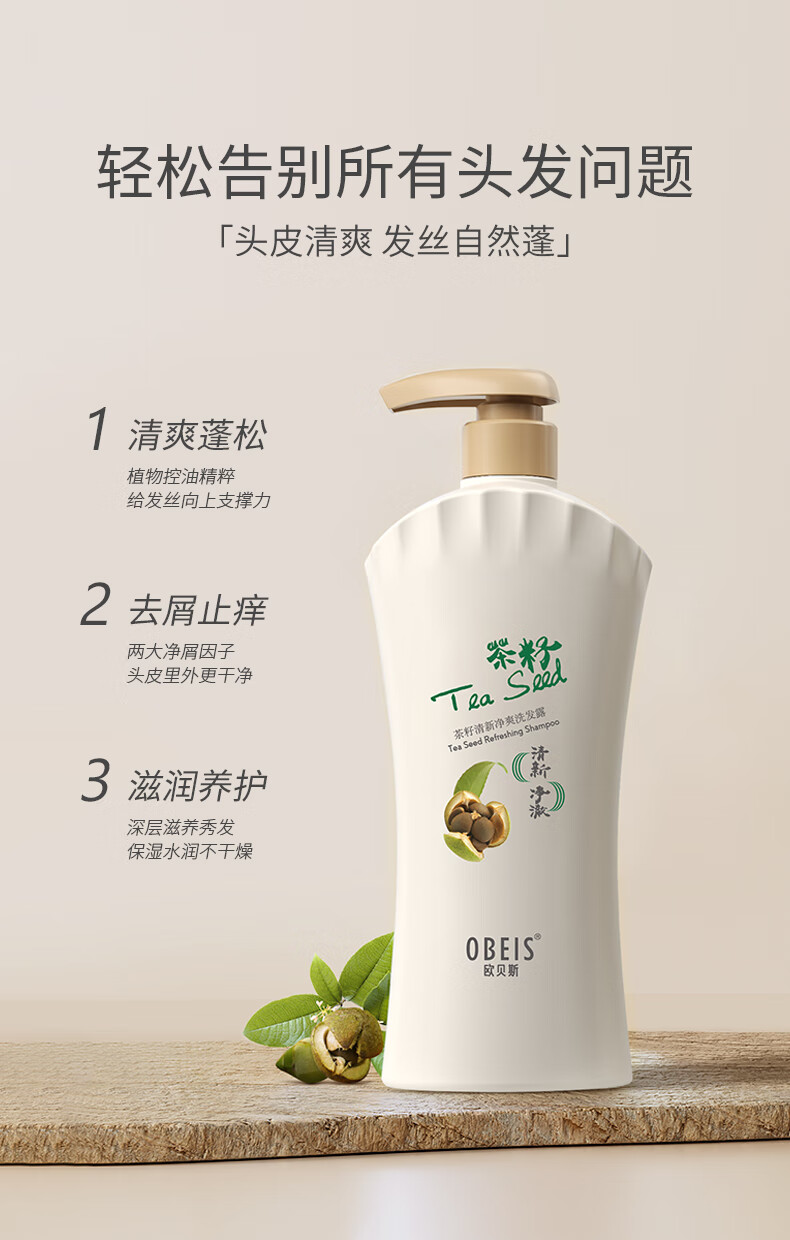 欧贝斯 草本茶籽去屑柔顺洗发露1kg