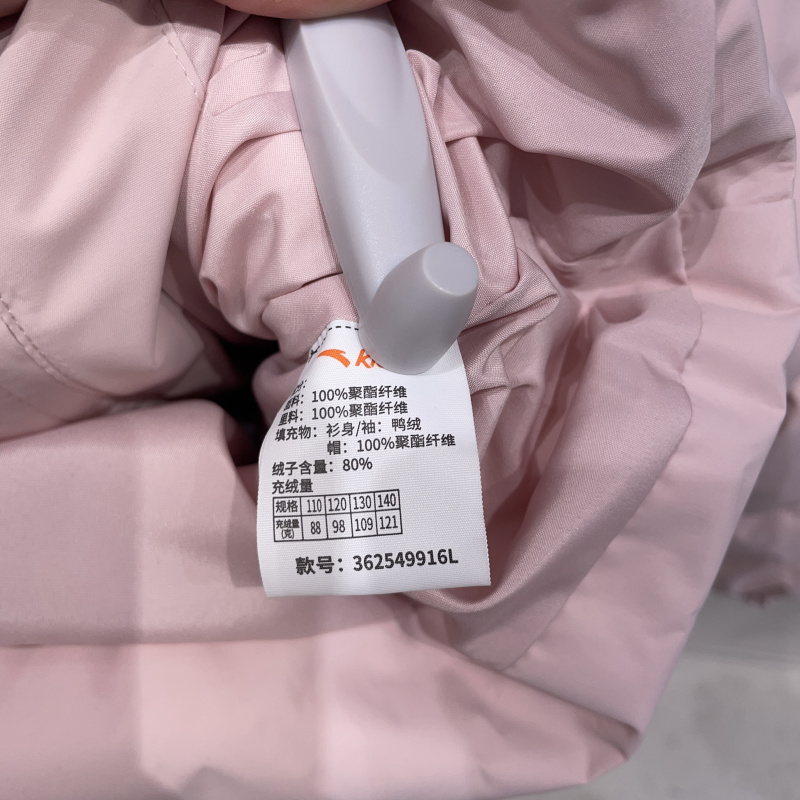 安踏童装儿童外套25冬季女小童时尚百搭宽松连帽羽绒服362549916L