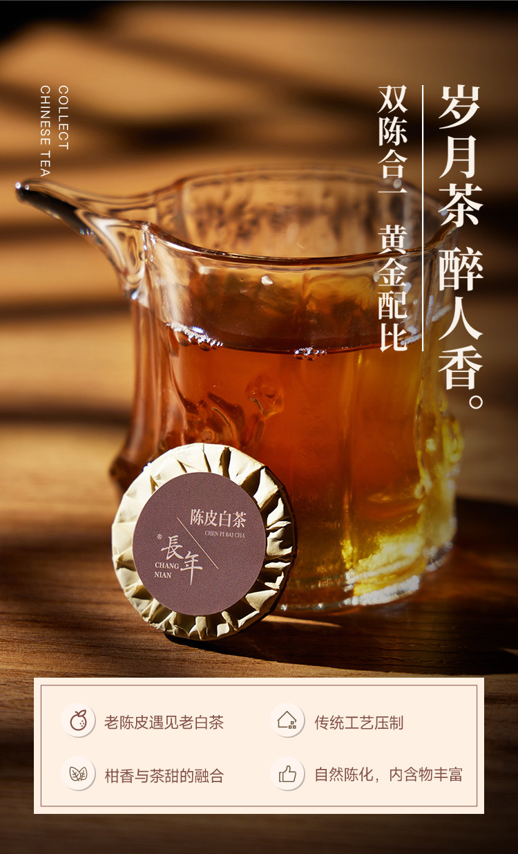 优选丨茶叶 陈皮白茶 新会陈皮 陈皮普洱 茶叶礼盒 礼盒 茶饮 五虎 260g(同款买1送1共520g,配手提袋)