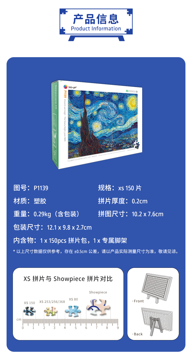 150片 迷你平面拼图 塑料拼图P1139 梵谷-星夜
