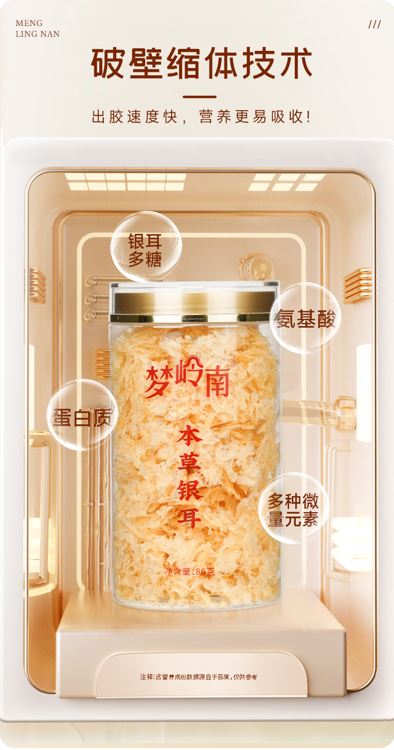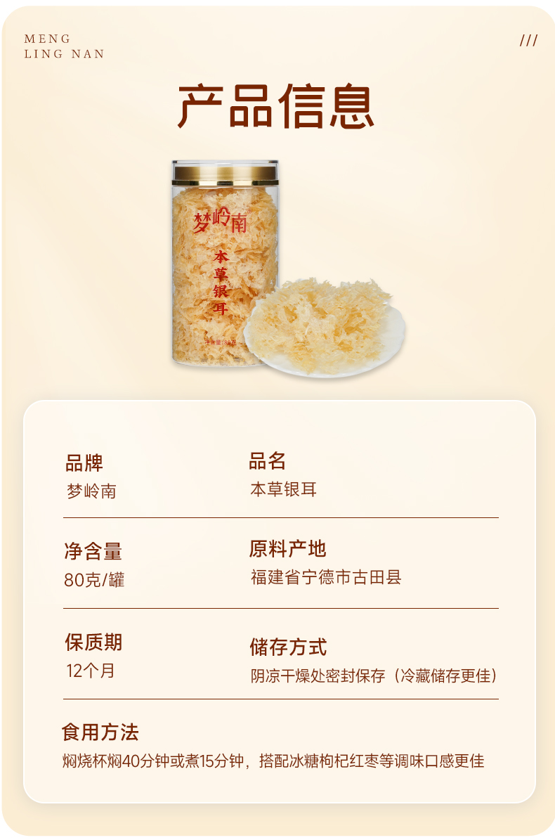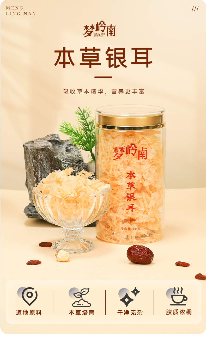 【清润养肺 胶质养颜】梦岭南冲泡即食本草银耳 福建古田原产 本草培育 食补养健康
