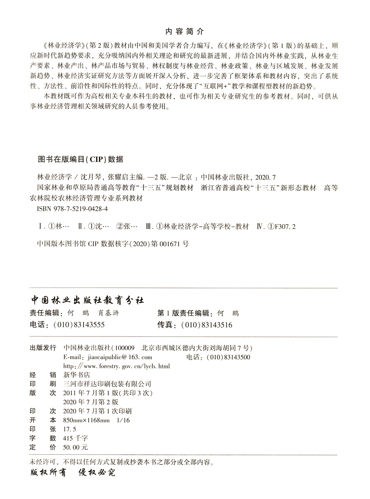 2020年版 林业经济学 第2版 高等农林院校农林经济管理专业系列教材 沈月琴//张耀启 0428 中国林业出版社
