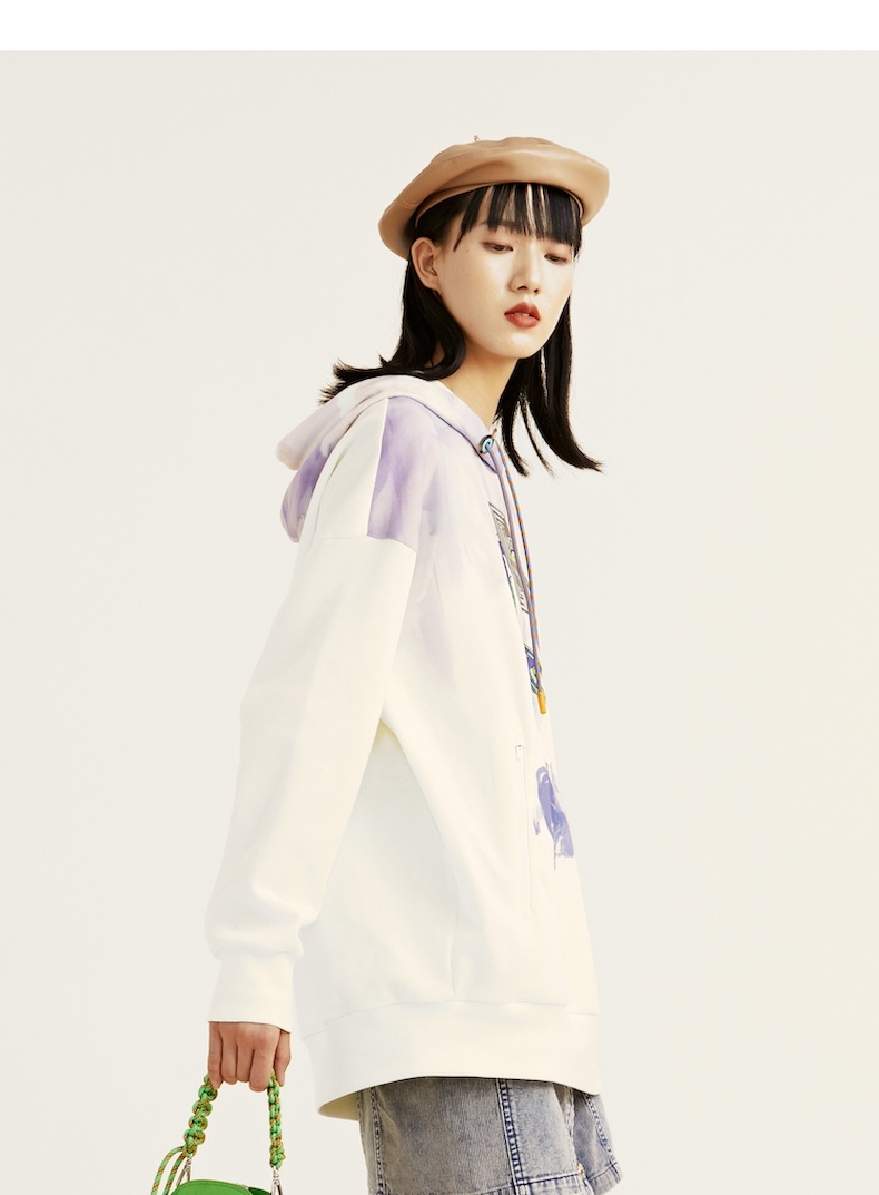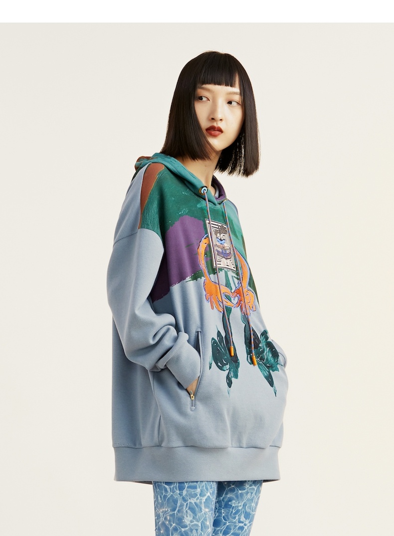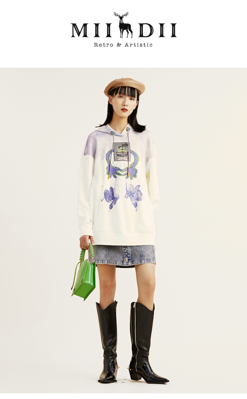 MIIDII谜底2021冬新款休闲连帽图案印花时尚卫衣女214MV2548