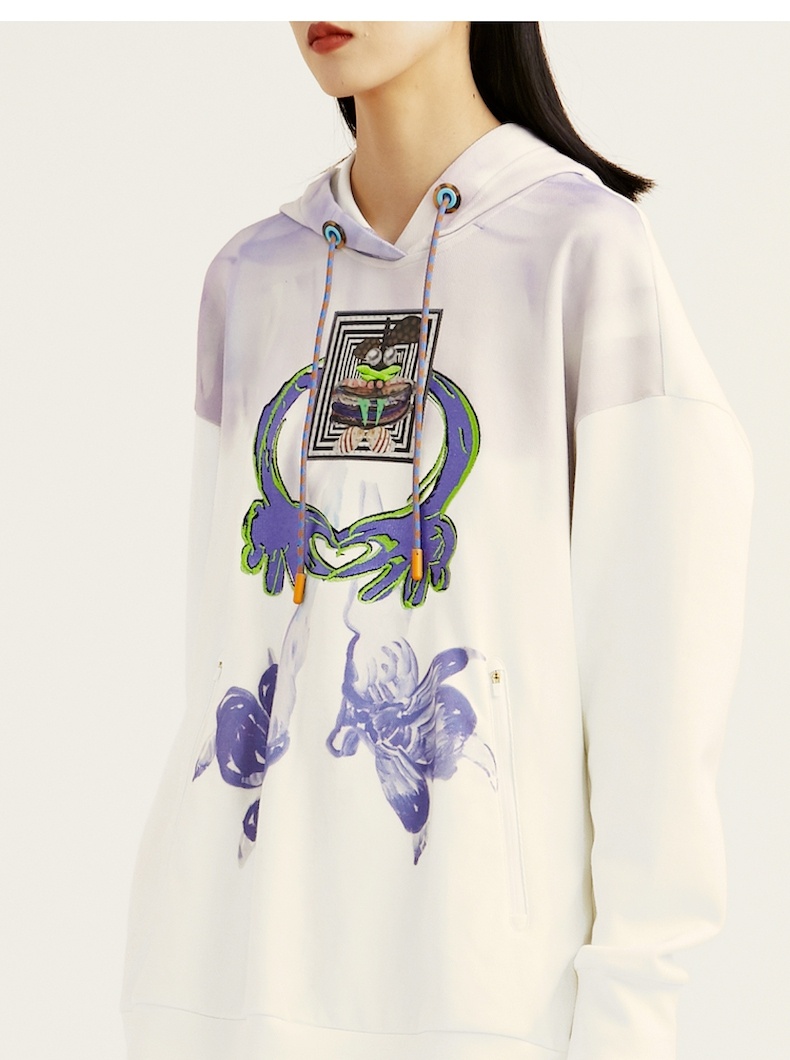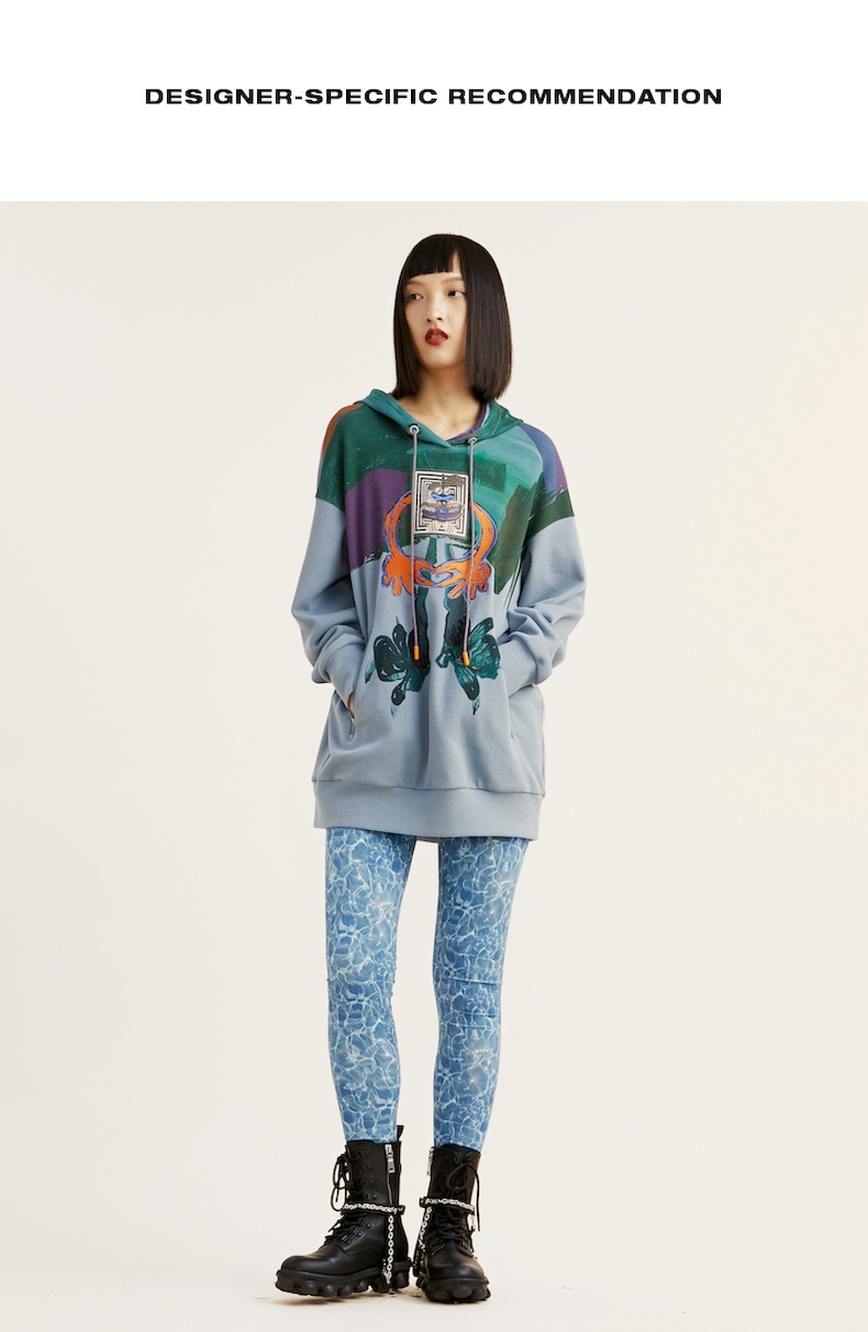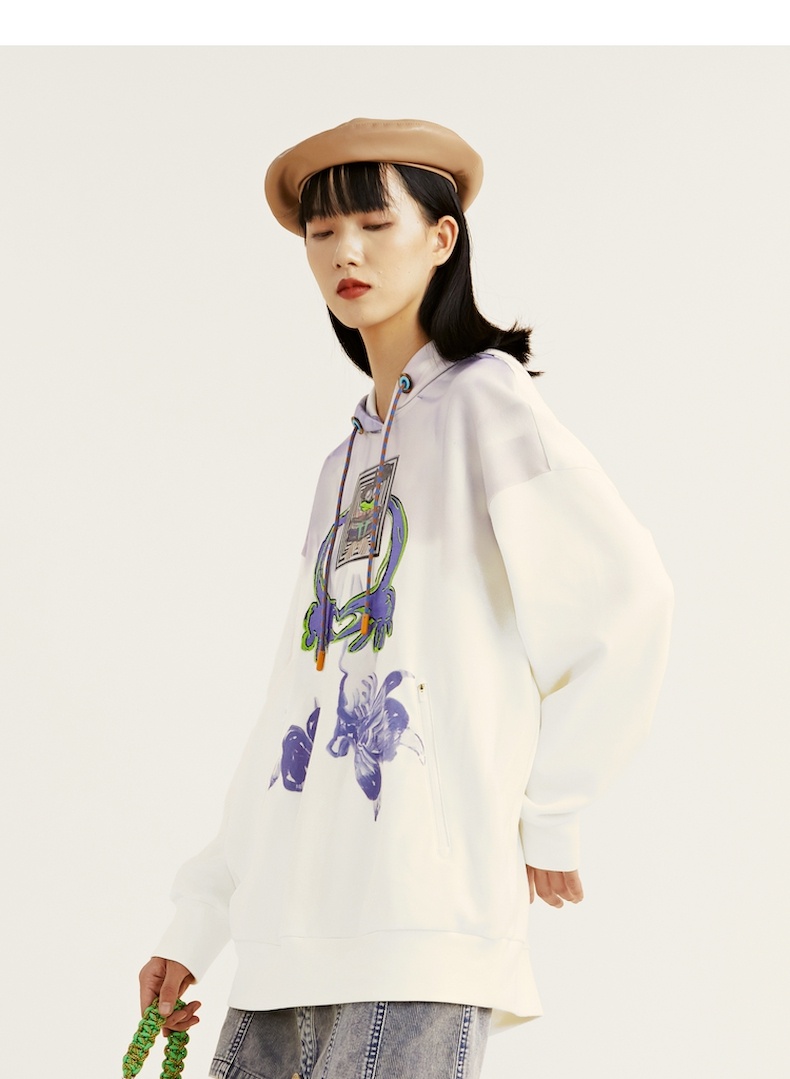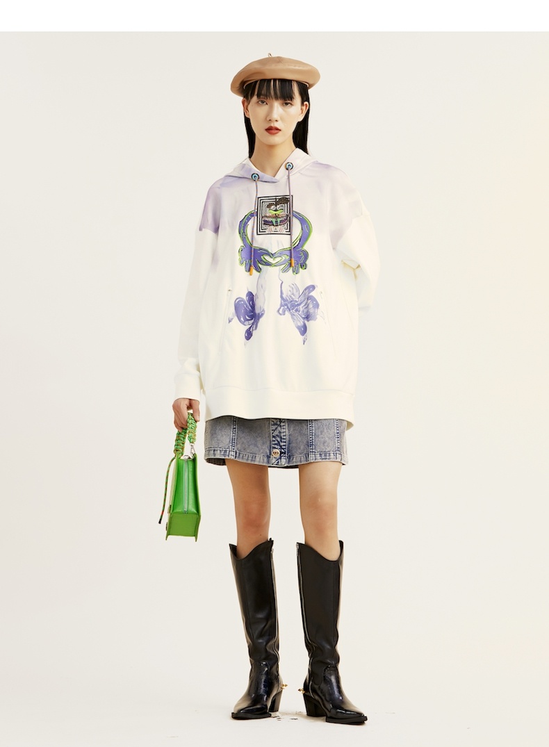 MIIDII谜底2021冬新款休闲连帽图案印花时尚卫衣女214MV2548