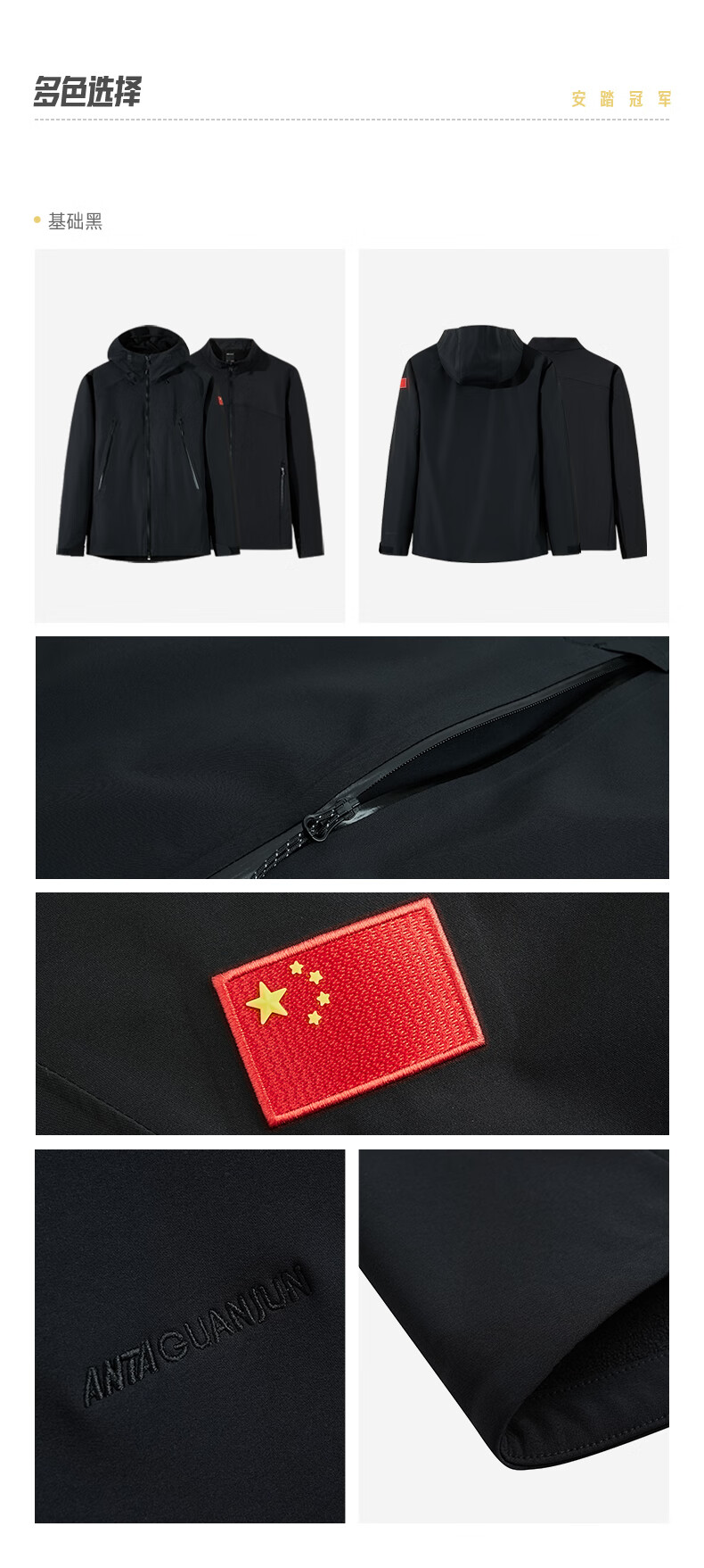 安踏冠军户外系列丨防泼水冲锋衣外套梭织内胆两件套男装152440616