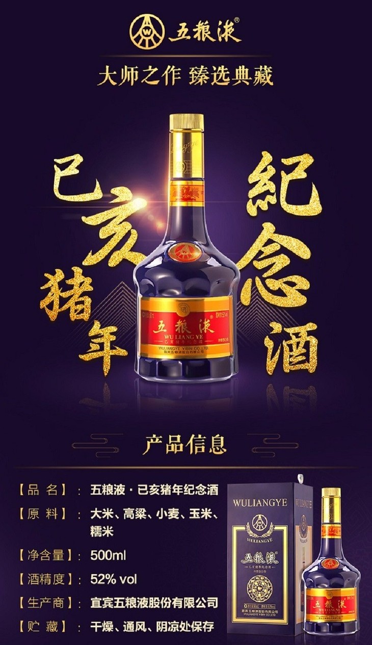 【推荐】五粮液 己亥猪年生肖纪念酒 浓香型 52度 500ml