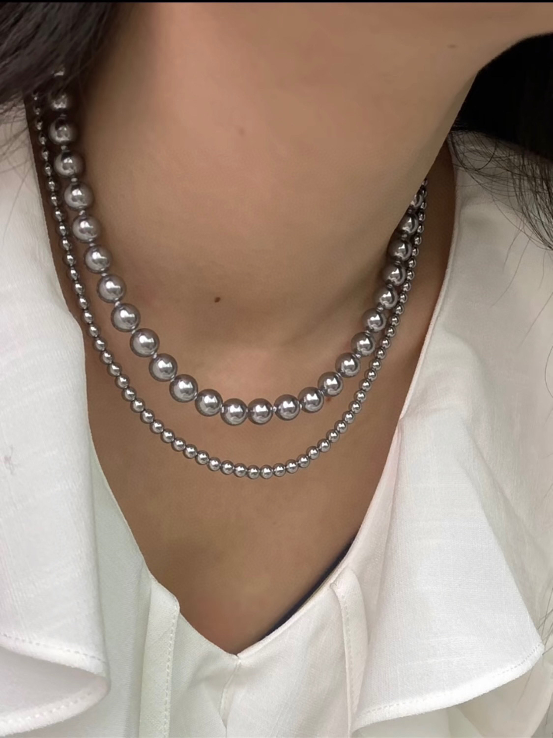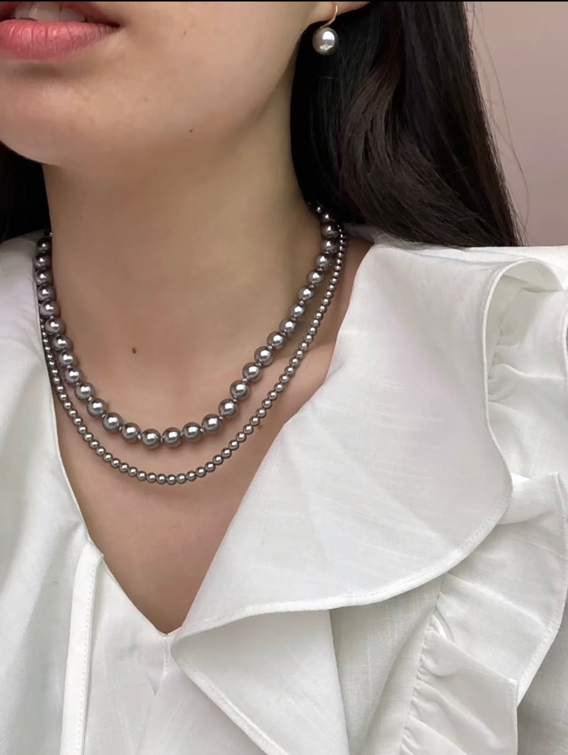 4MM,8MM,2个珍珠尺寸,可看人喜好 了,搭毛衣、裙子、衬衫,即使短袖都好看的。