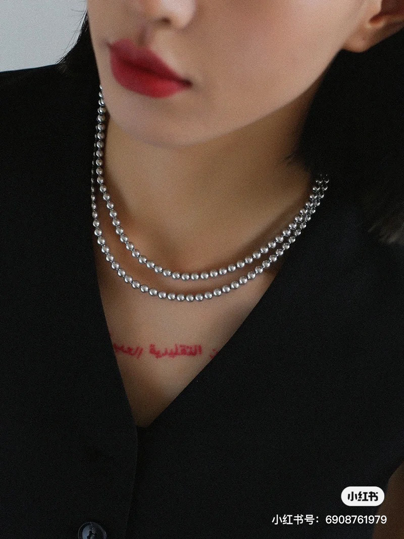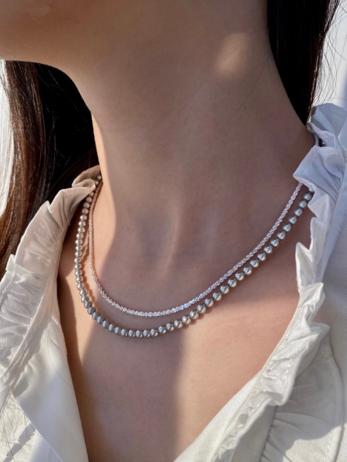 之前入了咱家白色项链的,这次可以叠加一起佩戴,超美的。