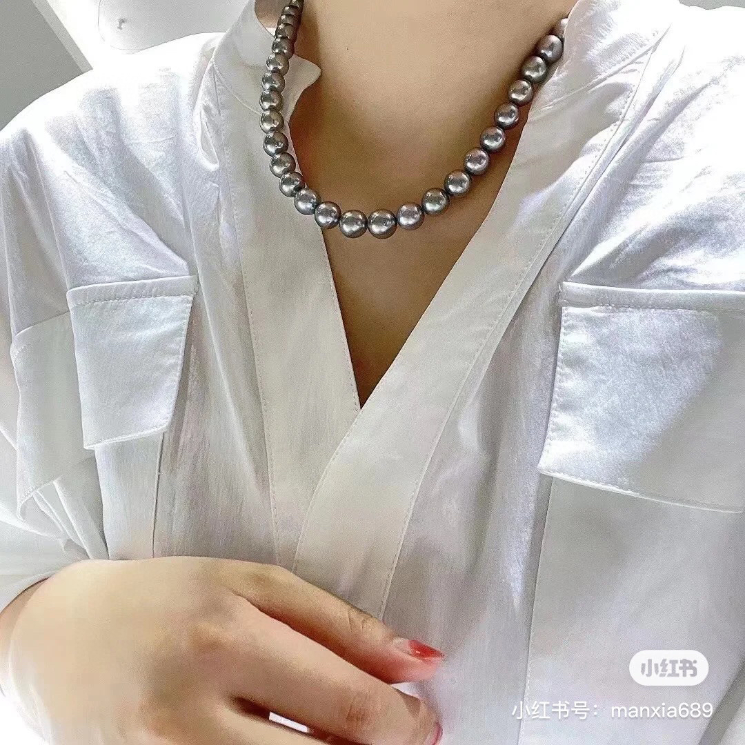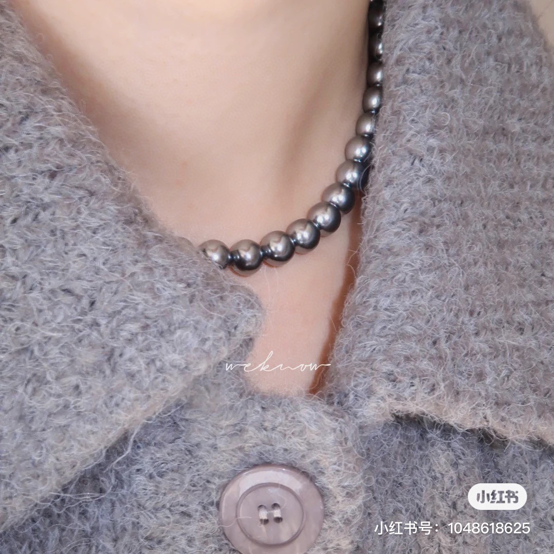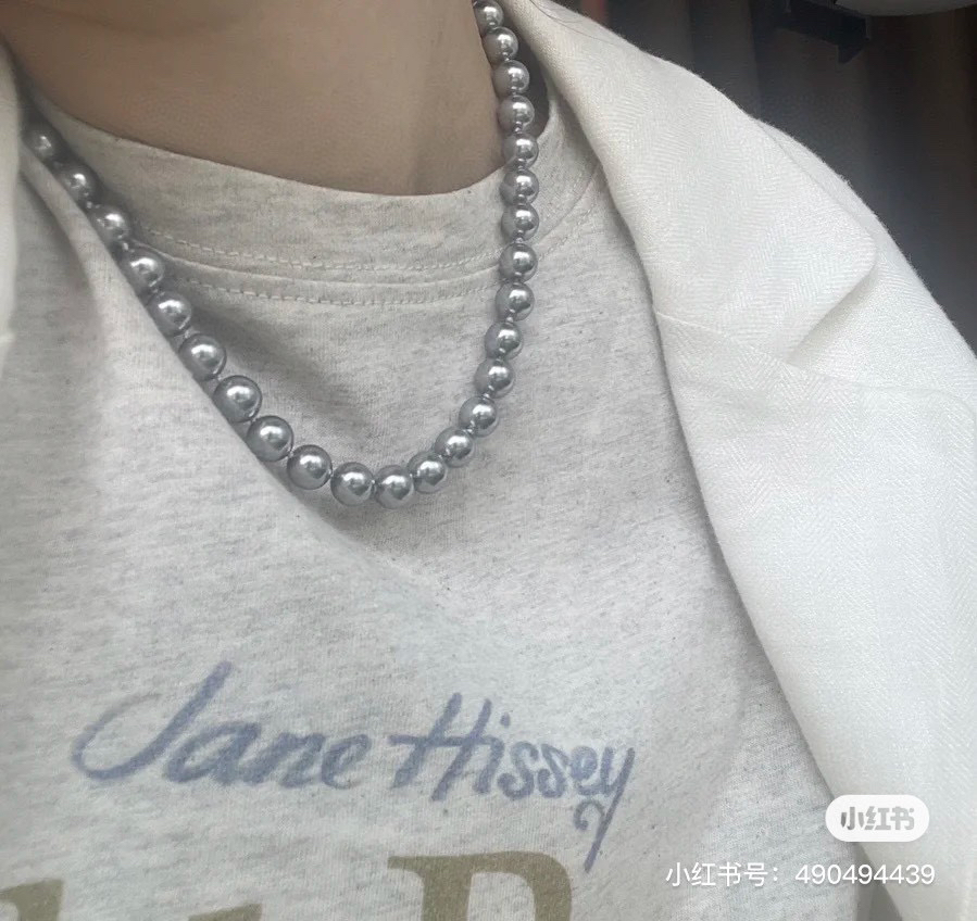 超高级的灰色,今年珍珠是大热啊,白珍珠就很美了,这个灰更深得我心啊这是。