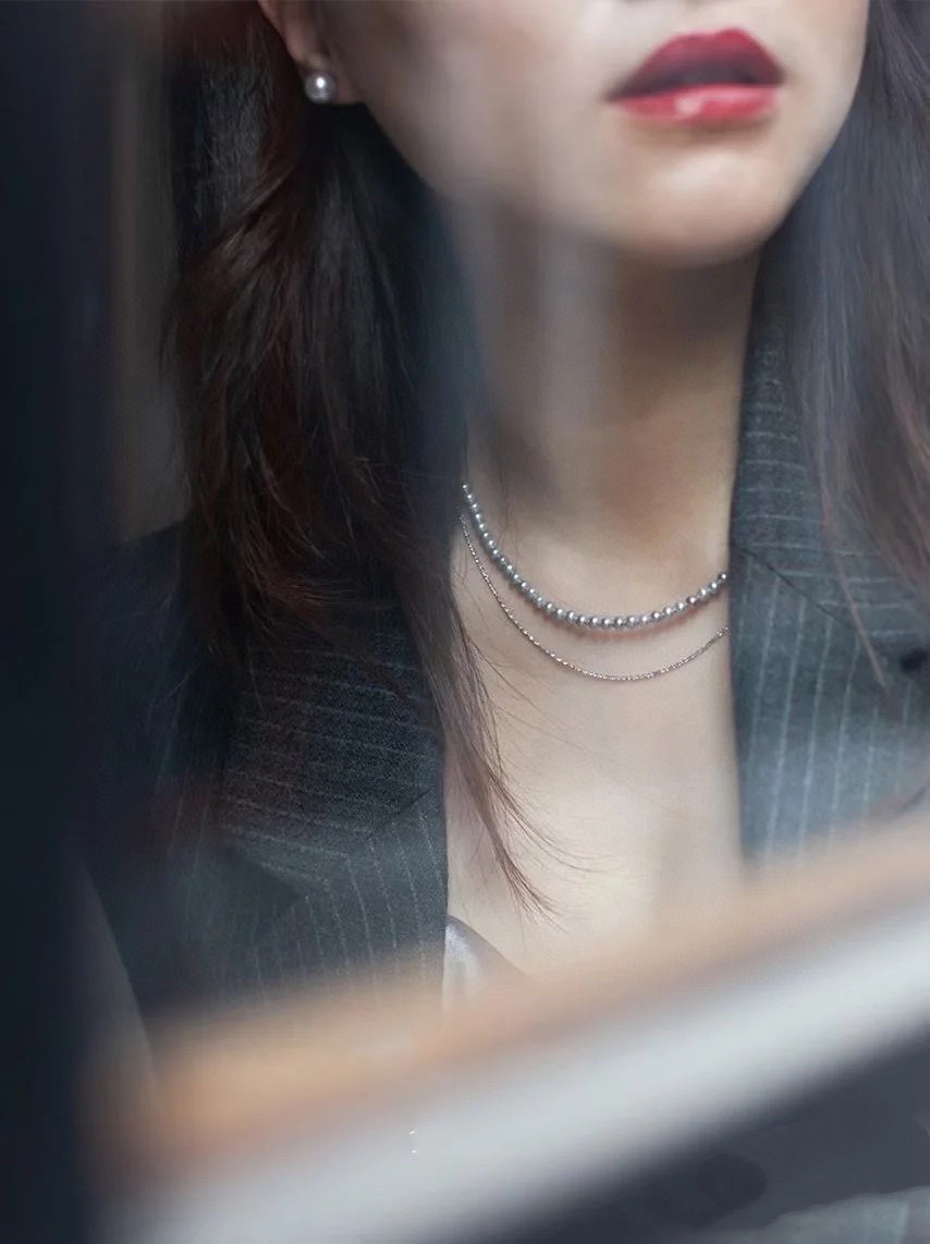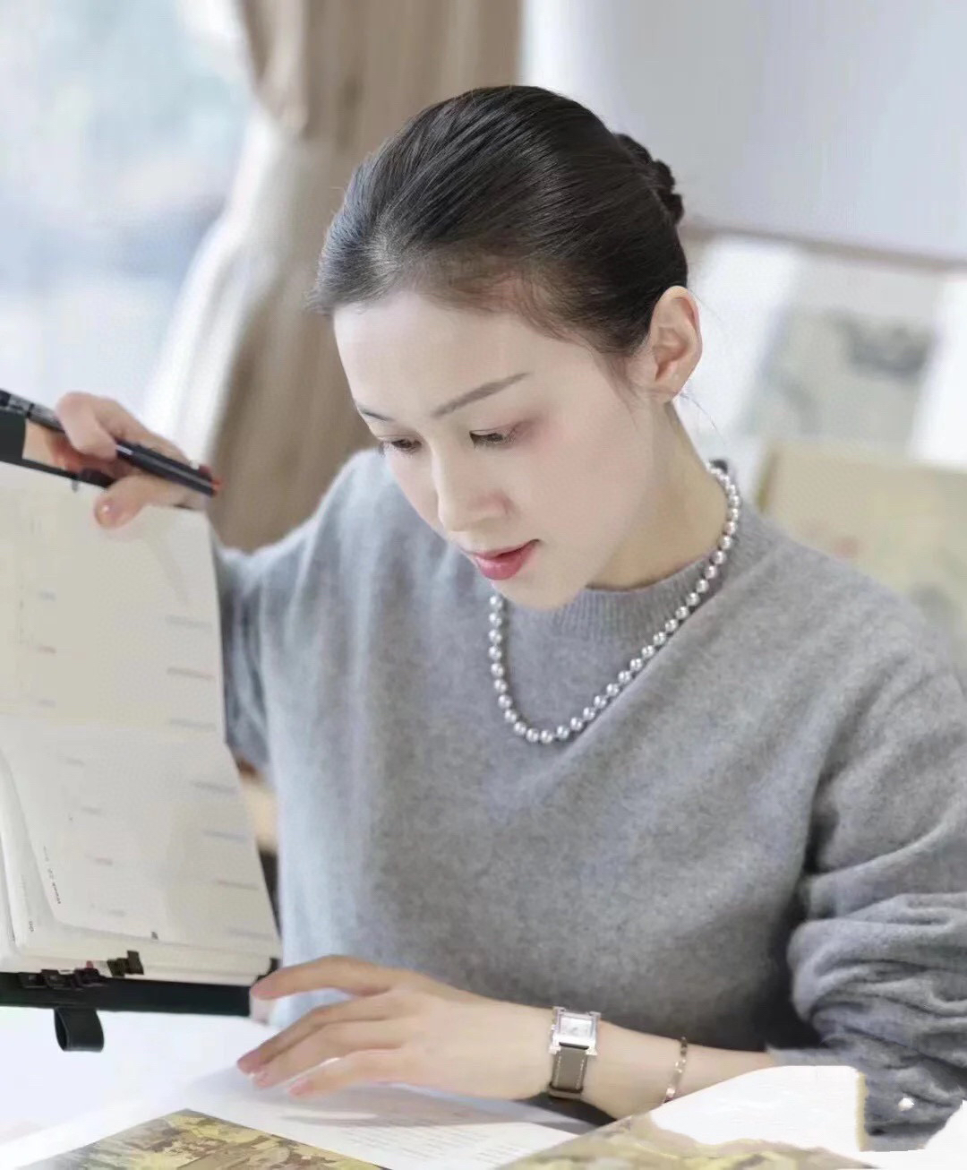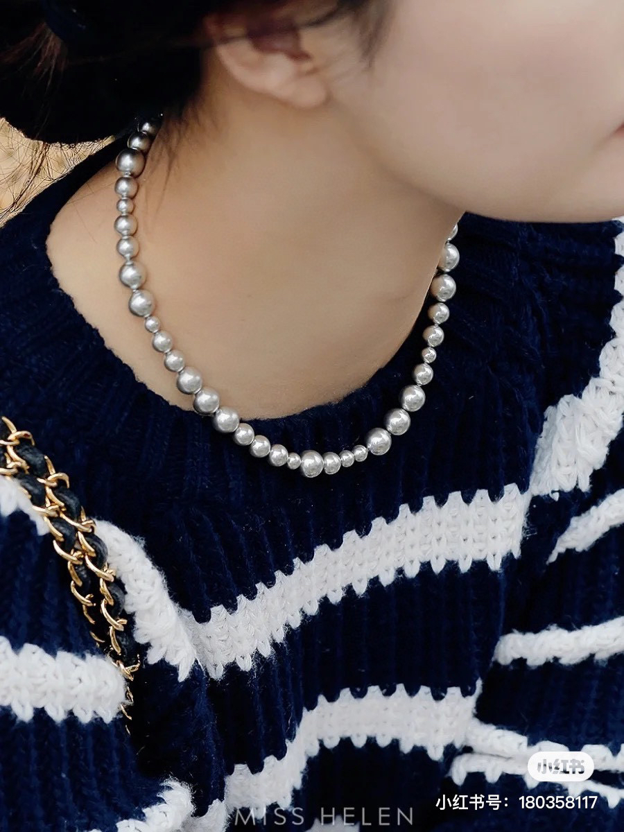 超高级的灰色,今年珍珠是大热啊,白珍珠就很美了,这个灰更深得我心啊这是。