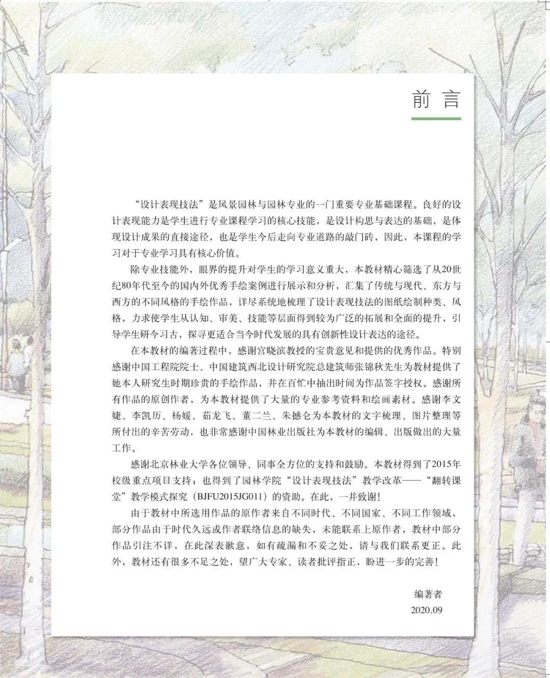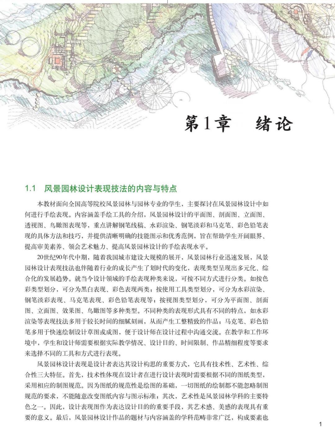 《风景园林设计表现技法》是以手绘表现为内容的专业基础教材,以满足风景园林专业、园林专业的教学需要。同时,对建筑学、城乡规划专业的教学,以及从事相关设计工作、手绘爱好者也具有实用价值。教材汇集了不同年代、不同类型、不同风格的手绘作品,并结合实际需要,挑选重点与难点做相应的步骤演示,内容涵盖从黑白线条到色彩、从平面图到剖面图、立面图,再到效果图、鸟瞰图的设计图纸表达。本教材所收集、编录的资料博采众长、兼收并蓄,旨在开阔学生视野,全面培养专业表现技能与审美素养,同时希望能够以此为契机,引导学生通过手绘表现训练,全面提升对风景园林设计的认知、理解与把握。