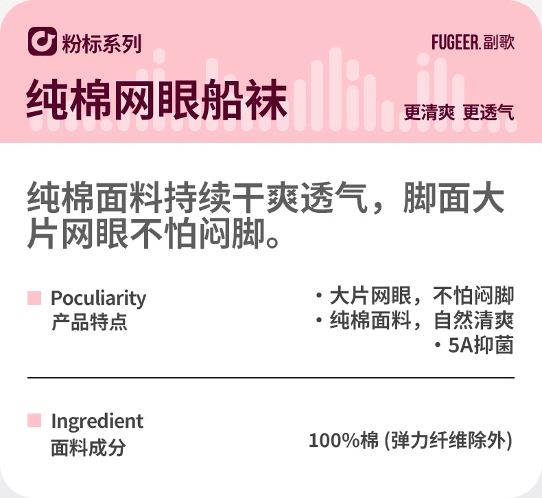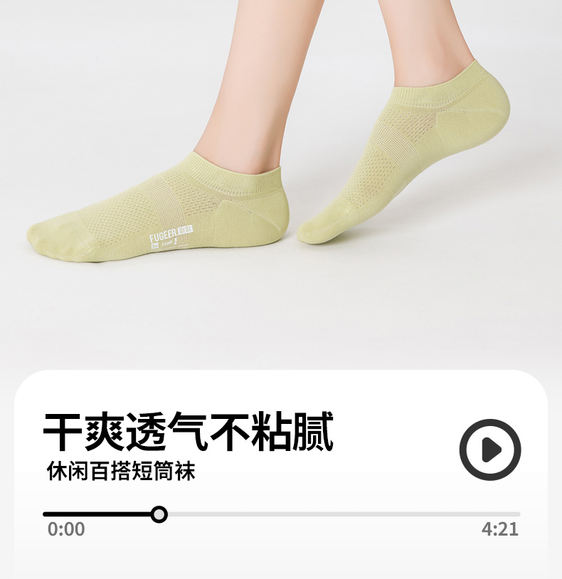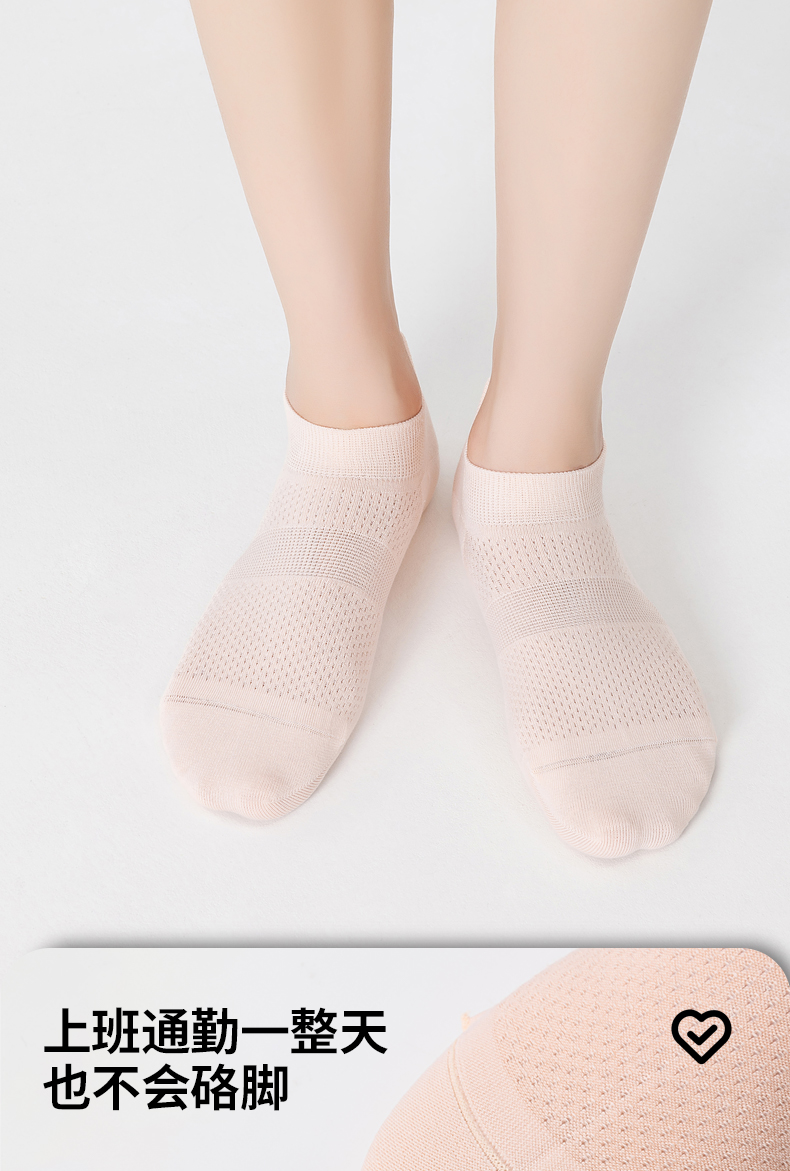 优选丨副歌袜子女士春夏季100%纯棉防臭吸汗隐形不掉跟抗菌运动网眼透气船袜