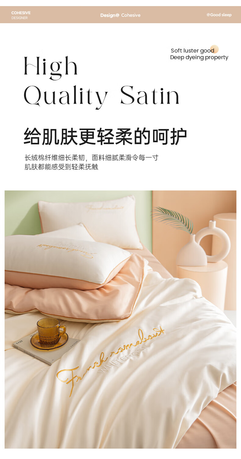 蒙卡罗尼 60S轻奢天丝长绒棉四件套-奶咖200*230cm