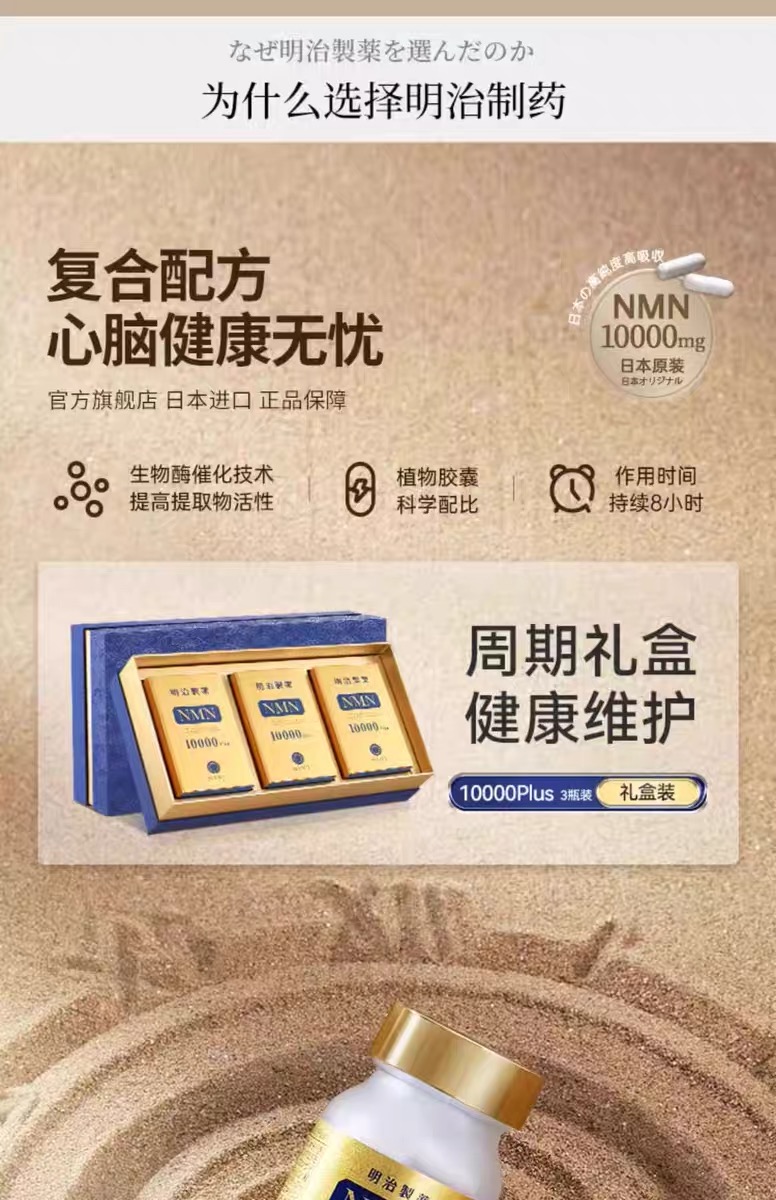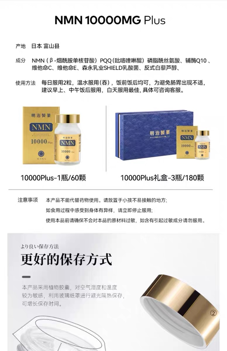 【礼想心动】明治制药 10000mgPlus 礼盒装 NMN·胶囊 60粒/瓶*3瓶【香港直邮】(香港直邮,一单仅限拍一件,请与其他商品分开下单,需要单独购买)