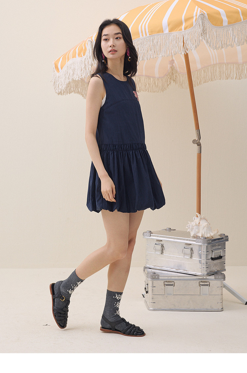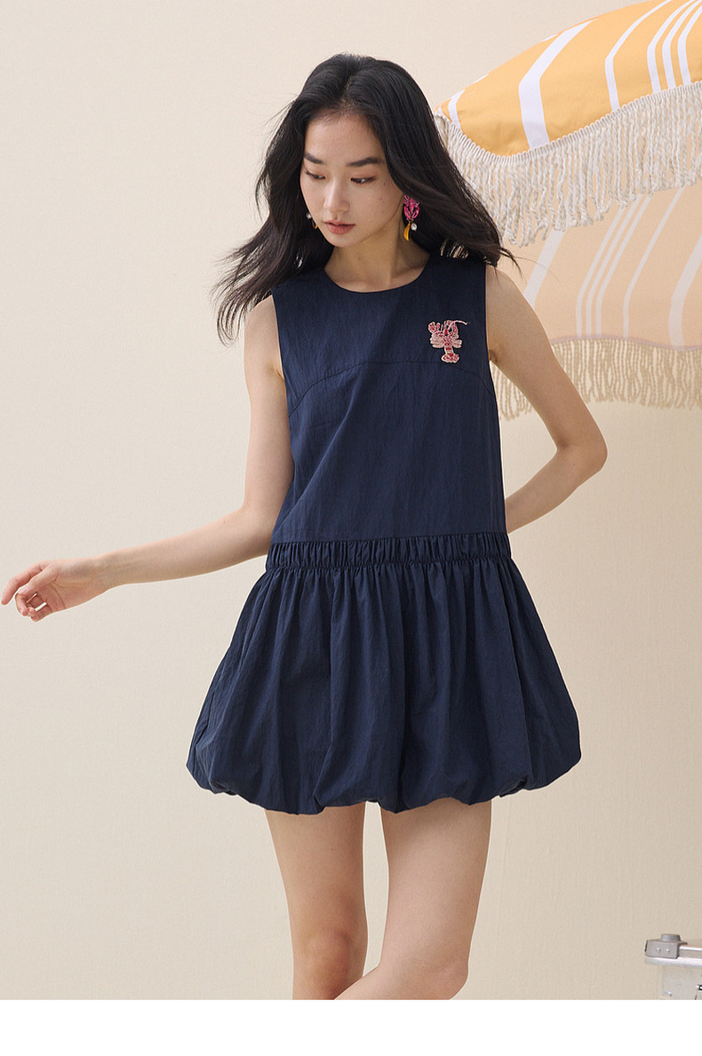 谜底连衣裙无袖2026年夏季新品泡泡下摆可爱俏皮章仔女262ML0512