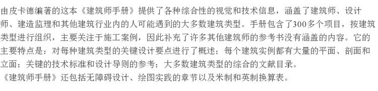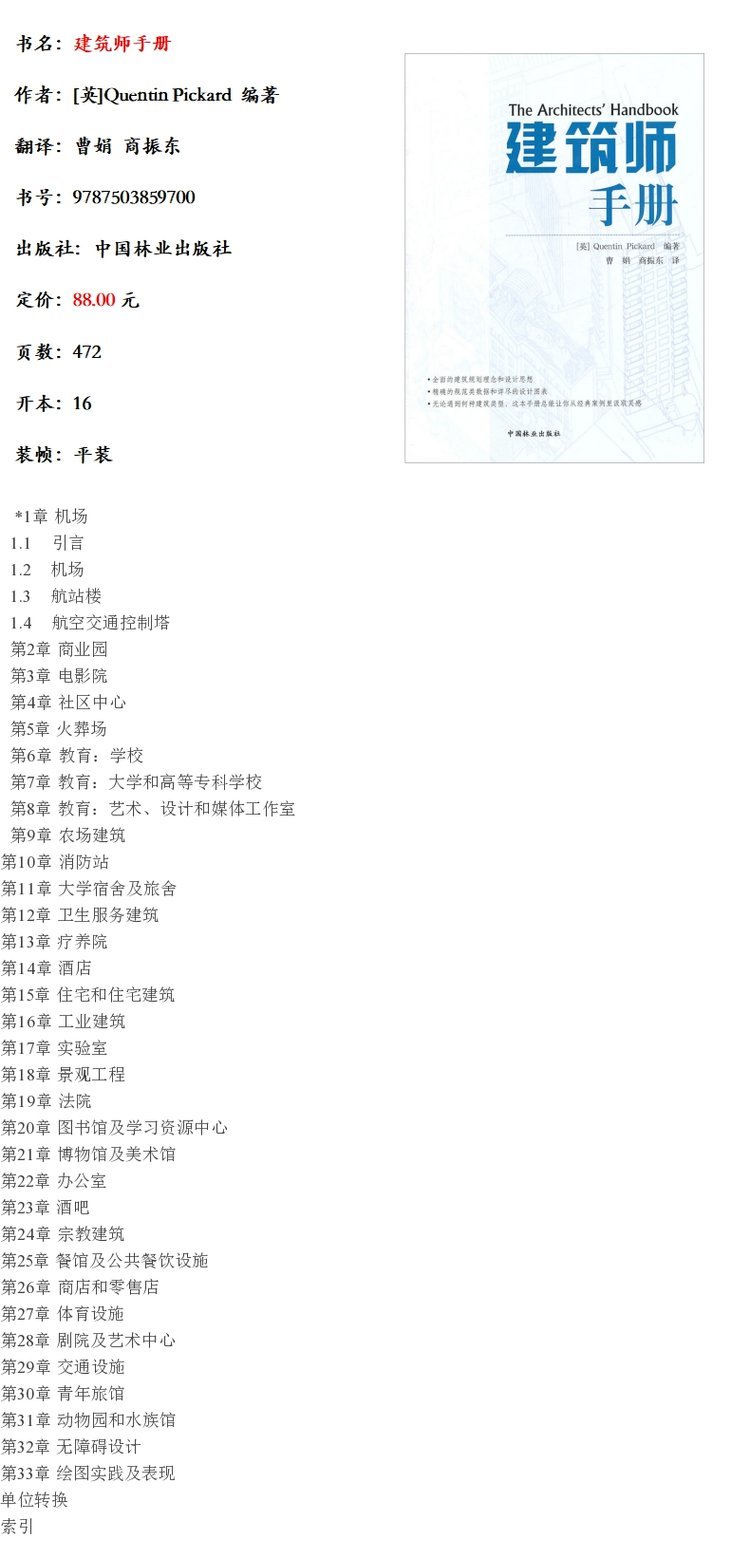 建筑师手册 [英]Quentin Pickard 5970 皮卡德 商业园教育农场建筑疗养院酒店住宅建筑交通设施无障碍设计 中国林业出版社 畅销书