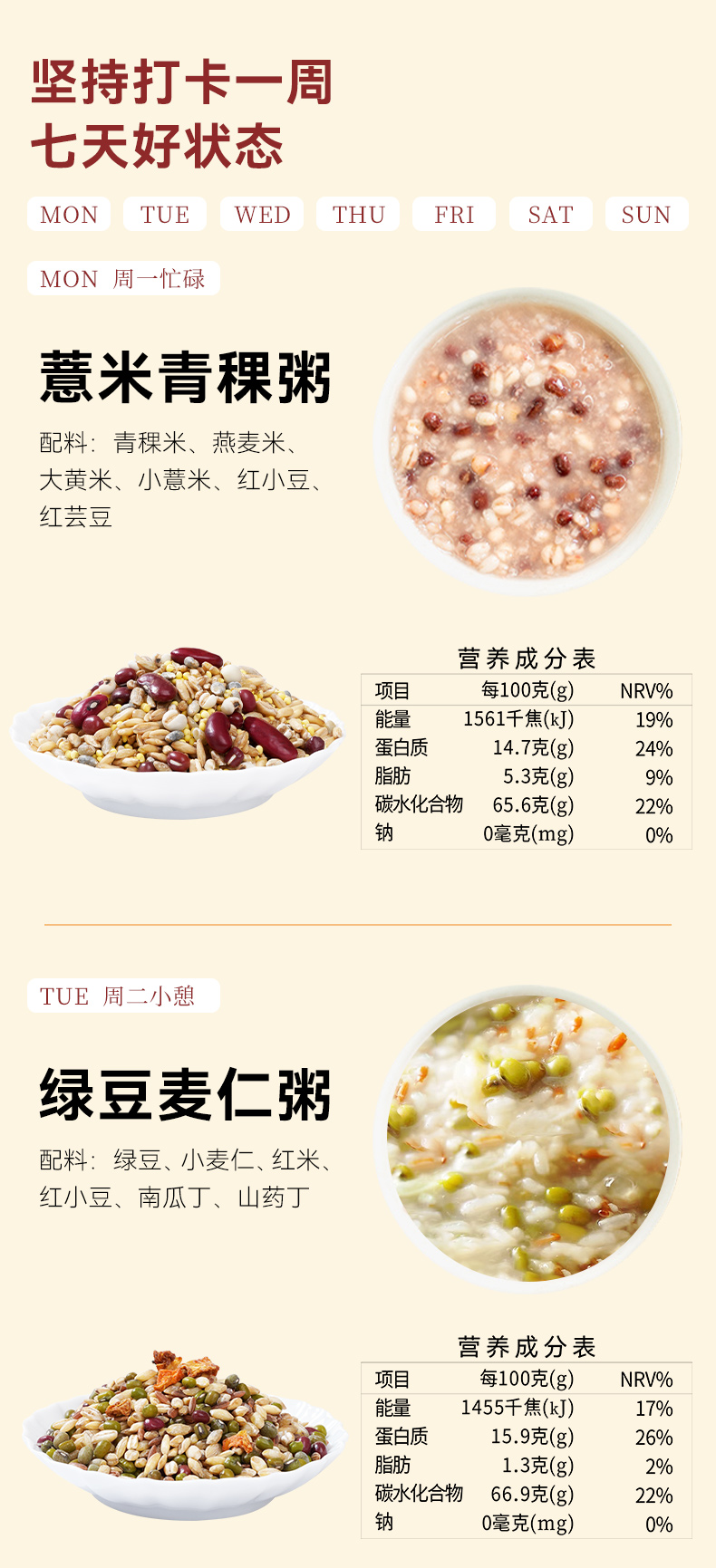 【七日养生粥 】7种粗粮科学搭配杂粮粥无需搭配 七天不重样