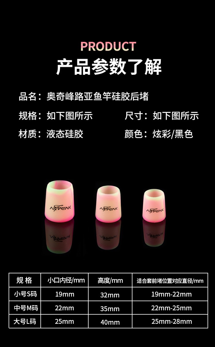 奥奇峰 炫彩硅胶路亚竿后堵黑色 鱼竿保护防磨防滑套外置竿塞尾堵