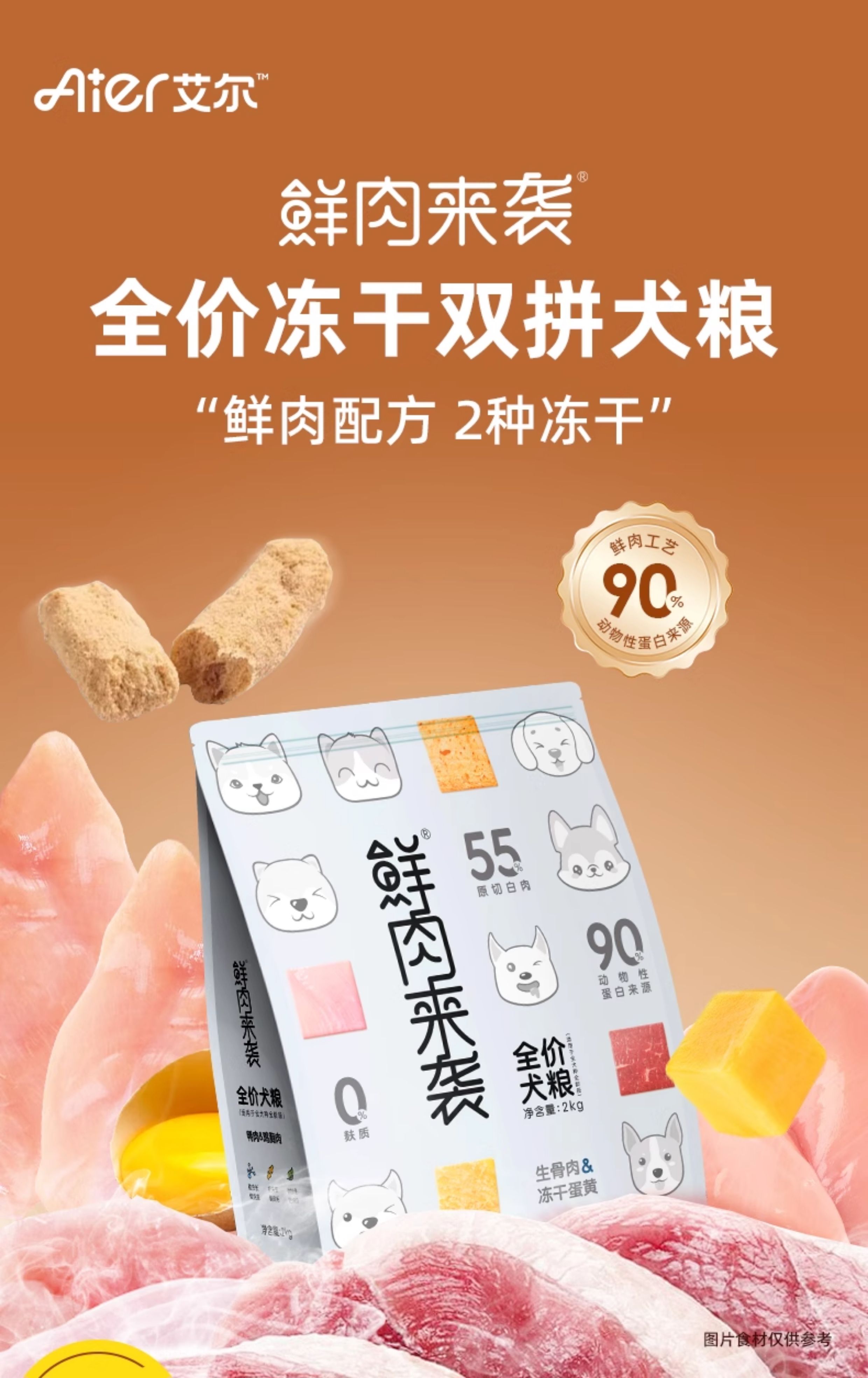 艾尔鲜肉来袭狗粮 蛋黄冻干生骨肉双拼成幼通用型犬粮