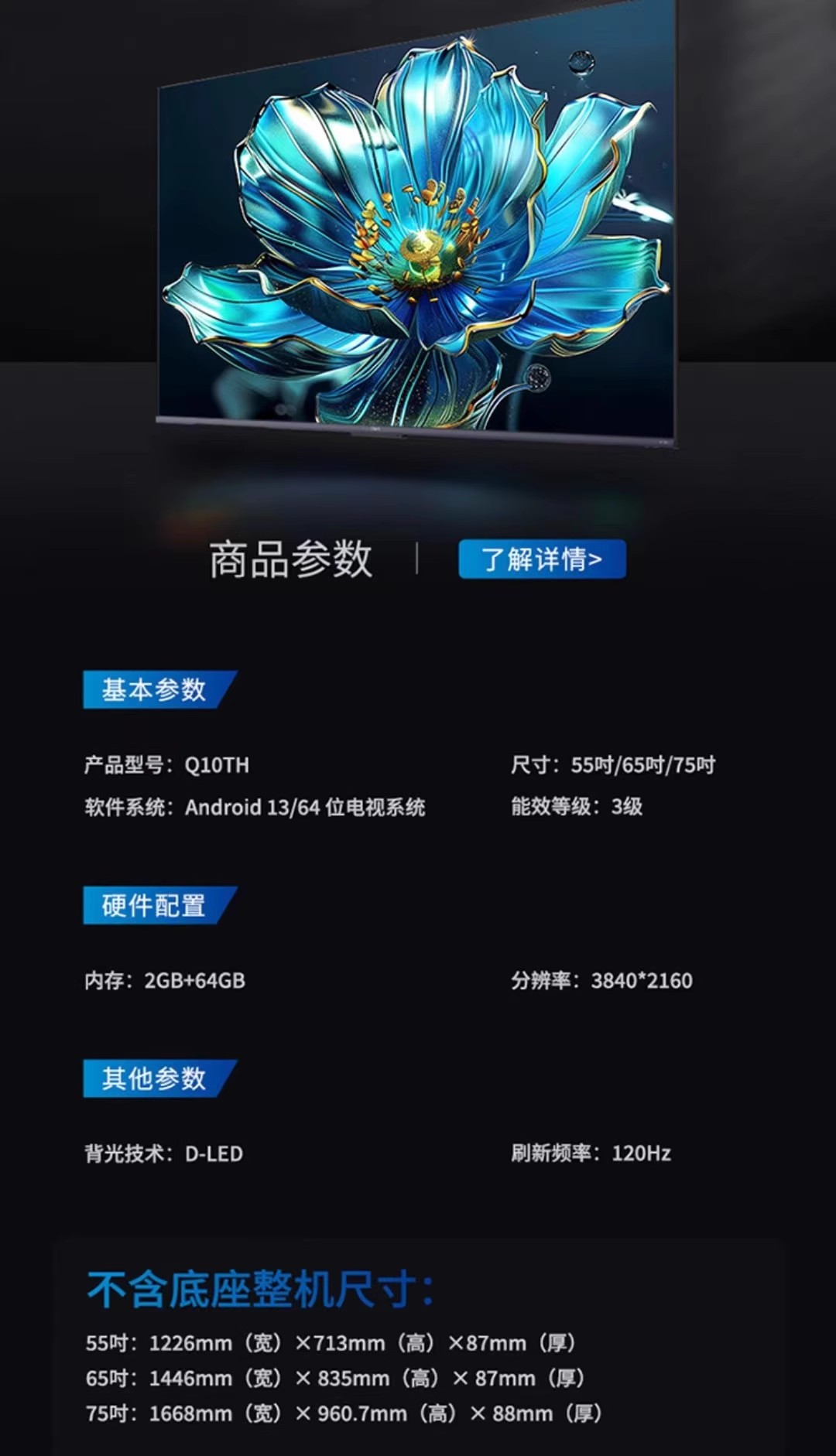 Changhong/长虹 65Q10T PRO \ 75Q10T PRO\ 85Q10T PRO 全通道120Hz 2+64GB大内存DC无屏闪LED液晶