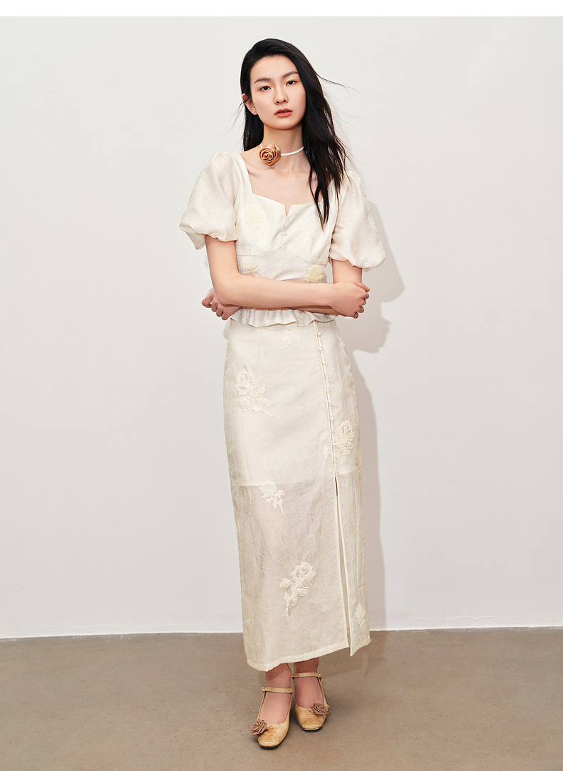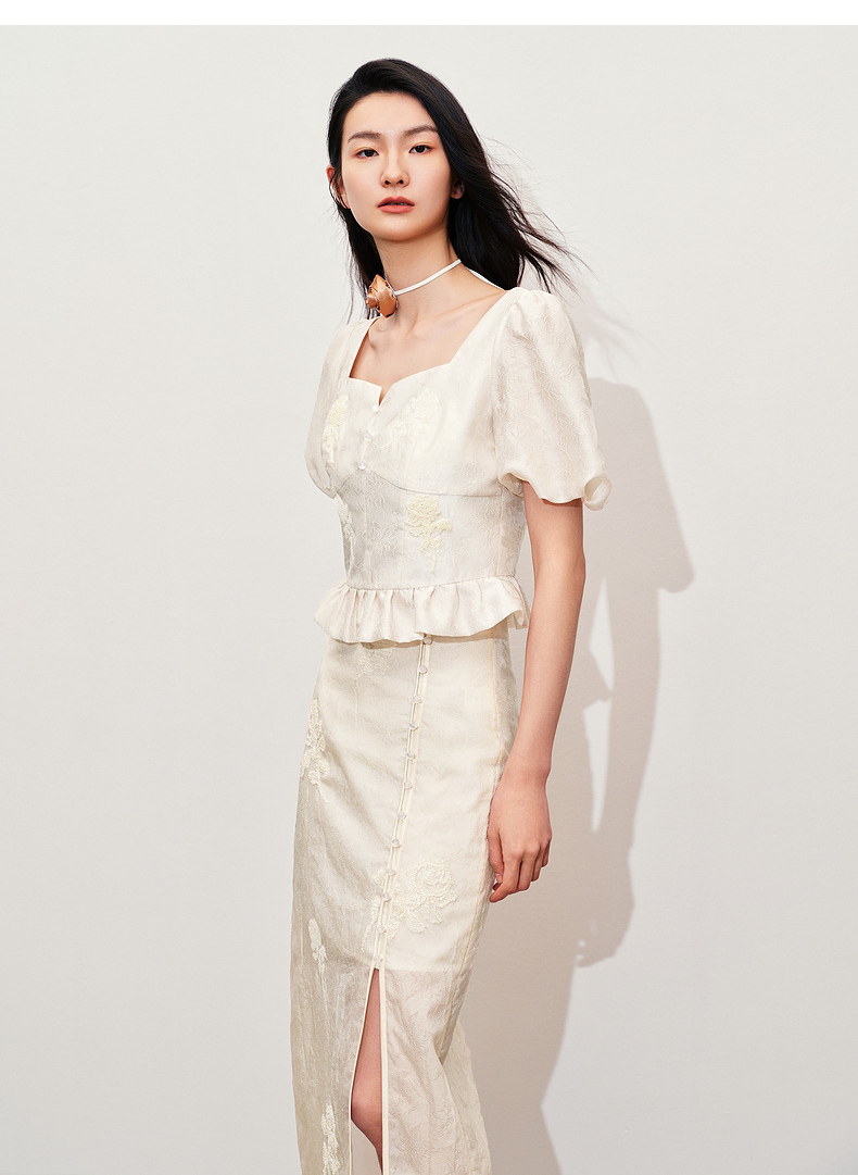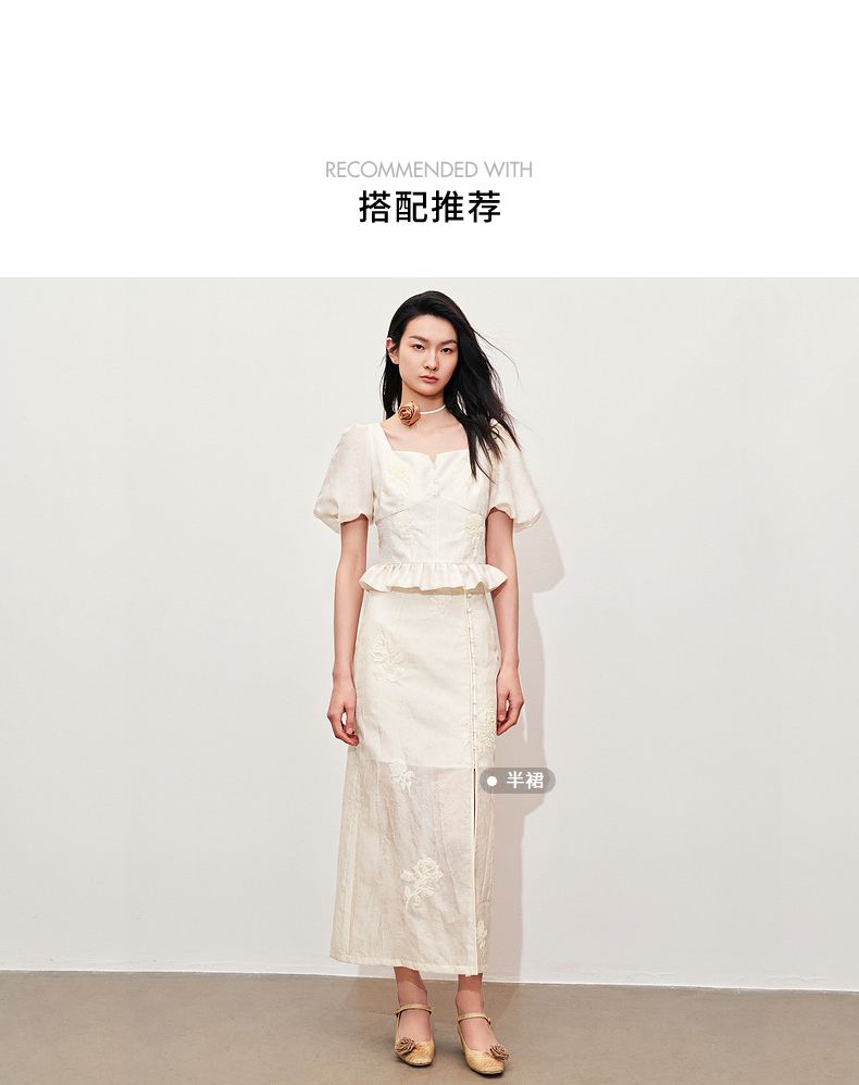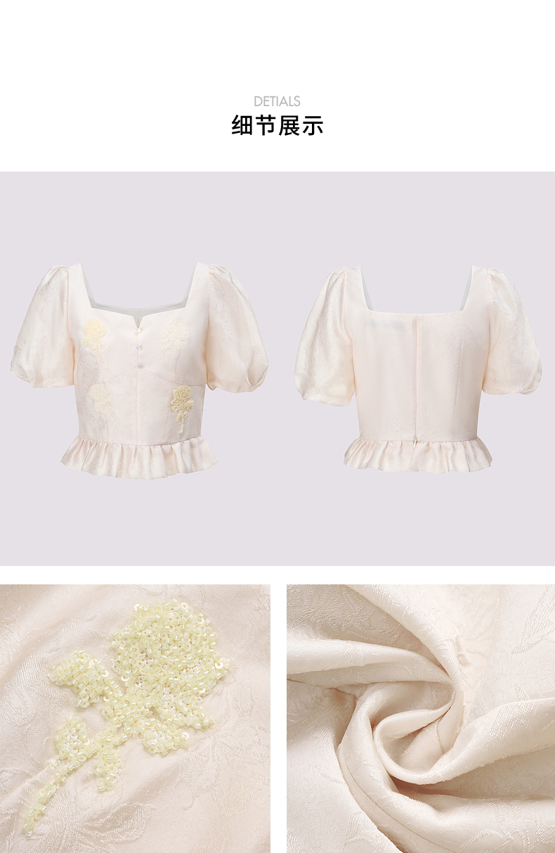 玛克门店发货:MAXRIENY新中式十字绣花方领雪纺衫上衣(货号:MC85TP322)