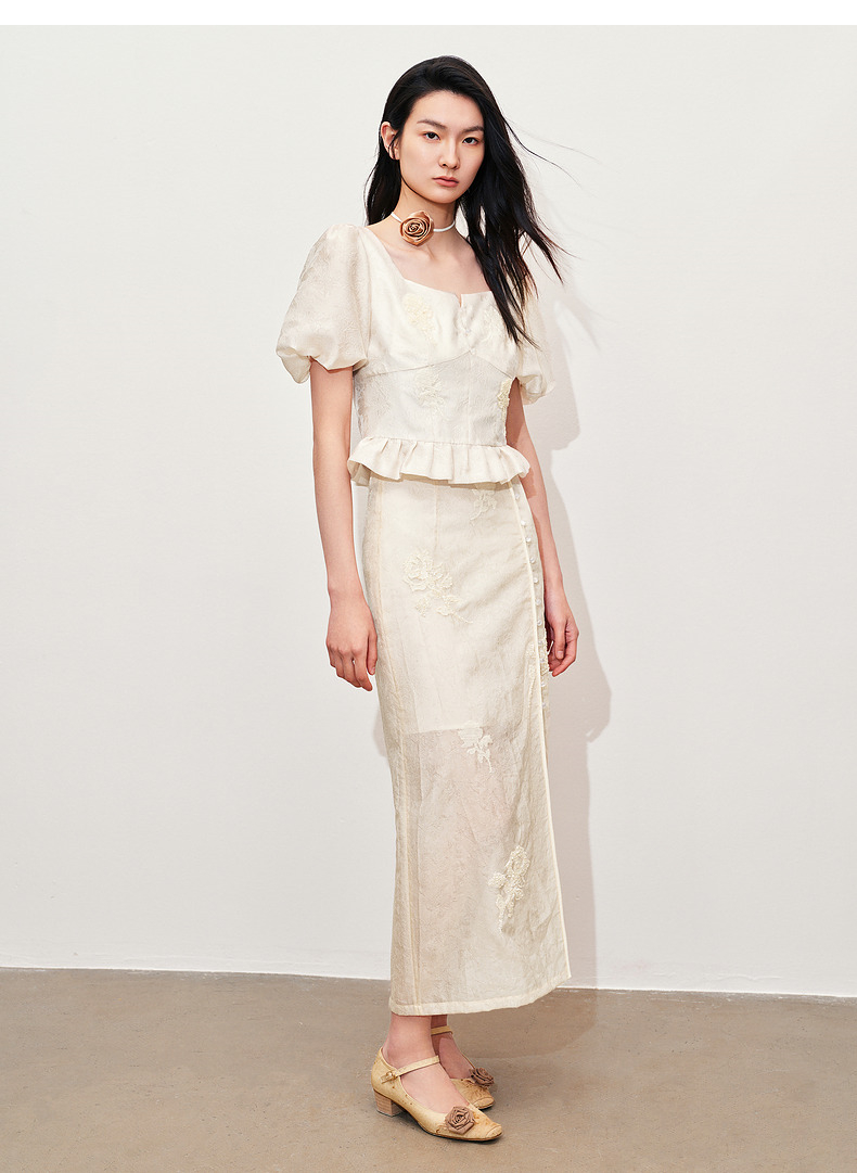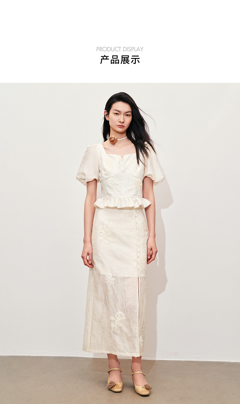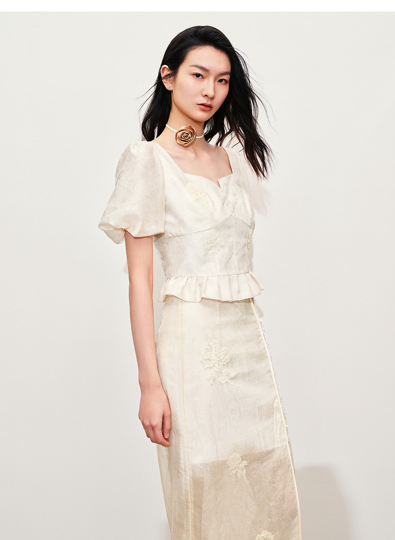 玛克门店发货:MAXRIENY新中式十字绣花方领雪纺衫上衣(货号:MC85TP322)
