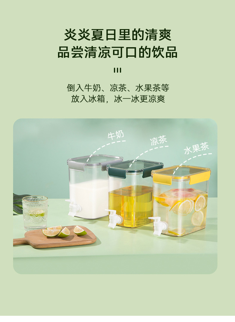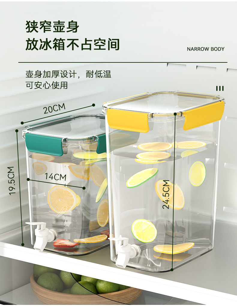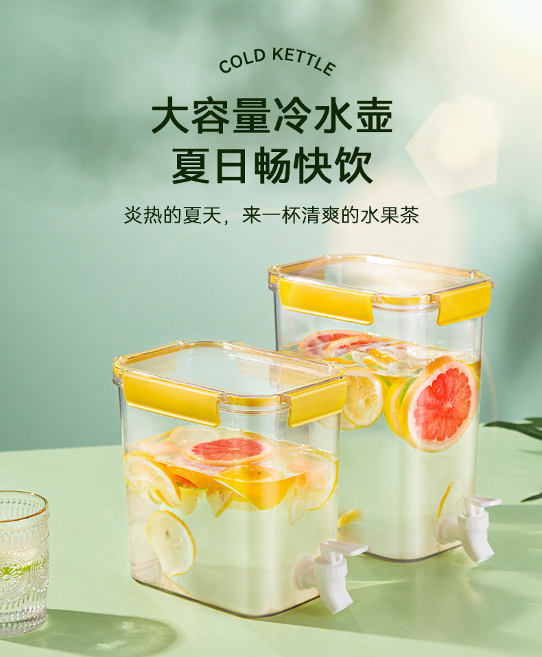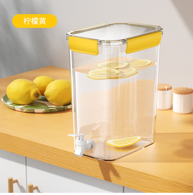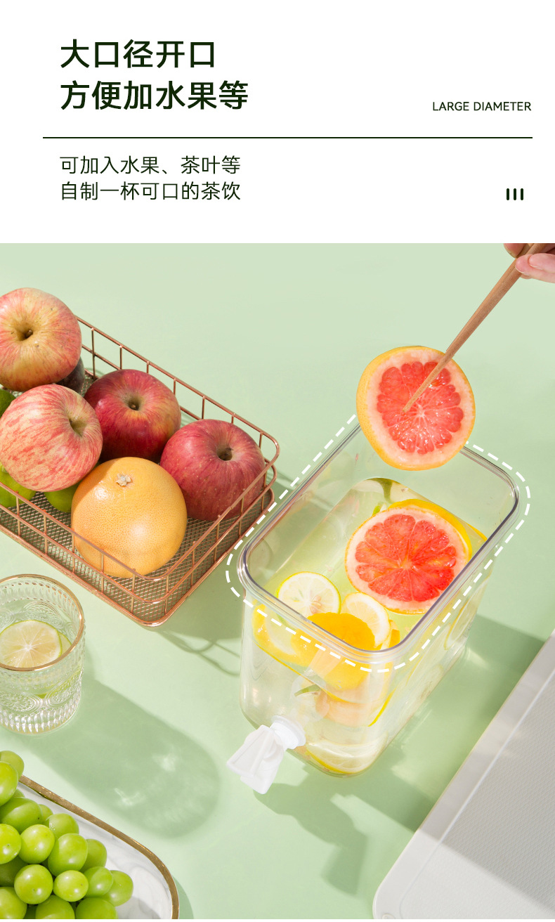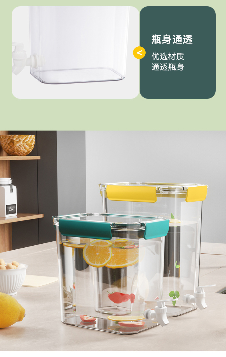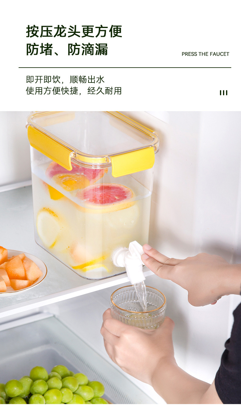 「4.5L大容量!三款配色」冷水壶带龙头 居家日用PET大容量透明塑料桶密封保鲜冰箱果汁罐