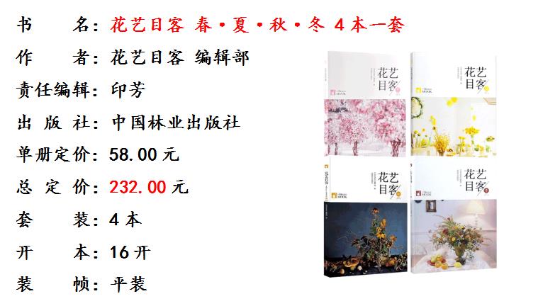 花艺目客 春 夏 秋 冬 4本套装花道婚礼花艺 商业花礼装饰 色彩搭配 干燥桌花 漂浮花艺 装饰 手捧花 压花制作要点 插花花艺设计书