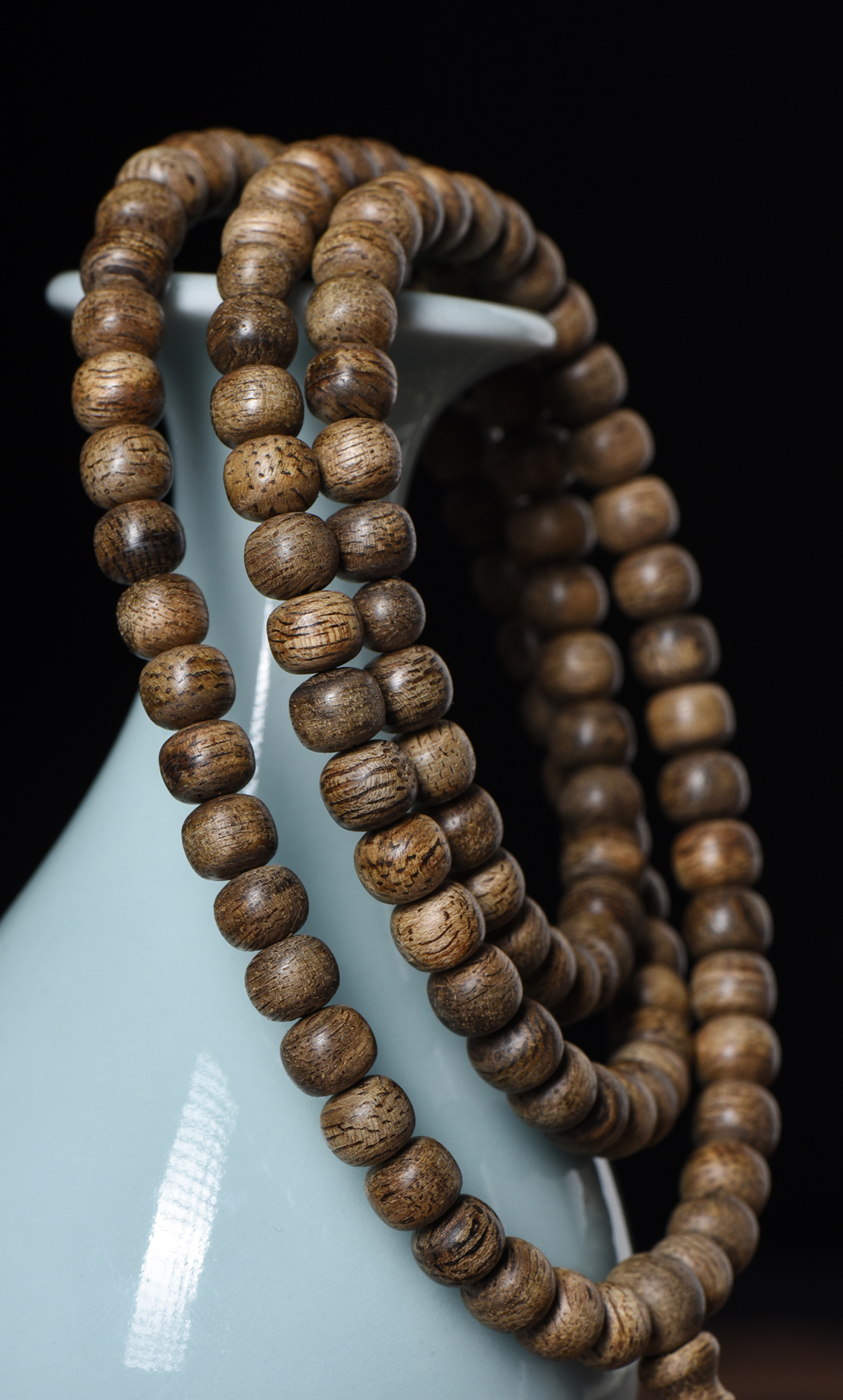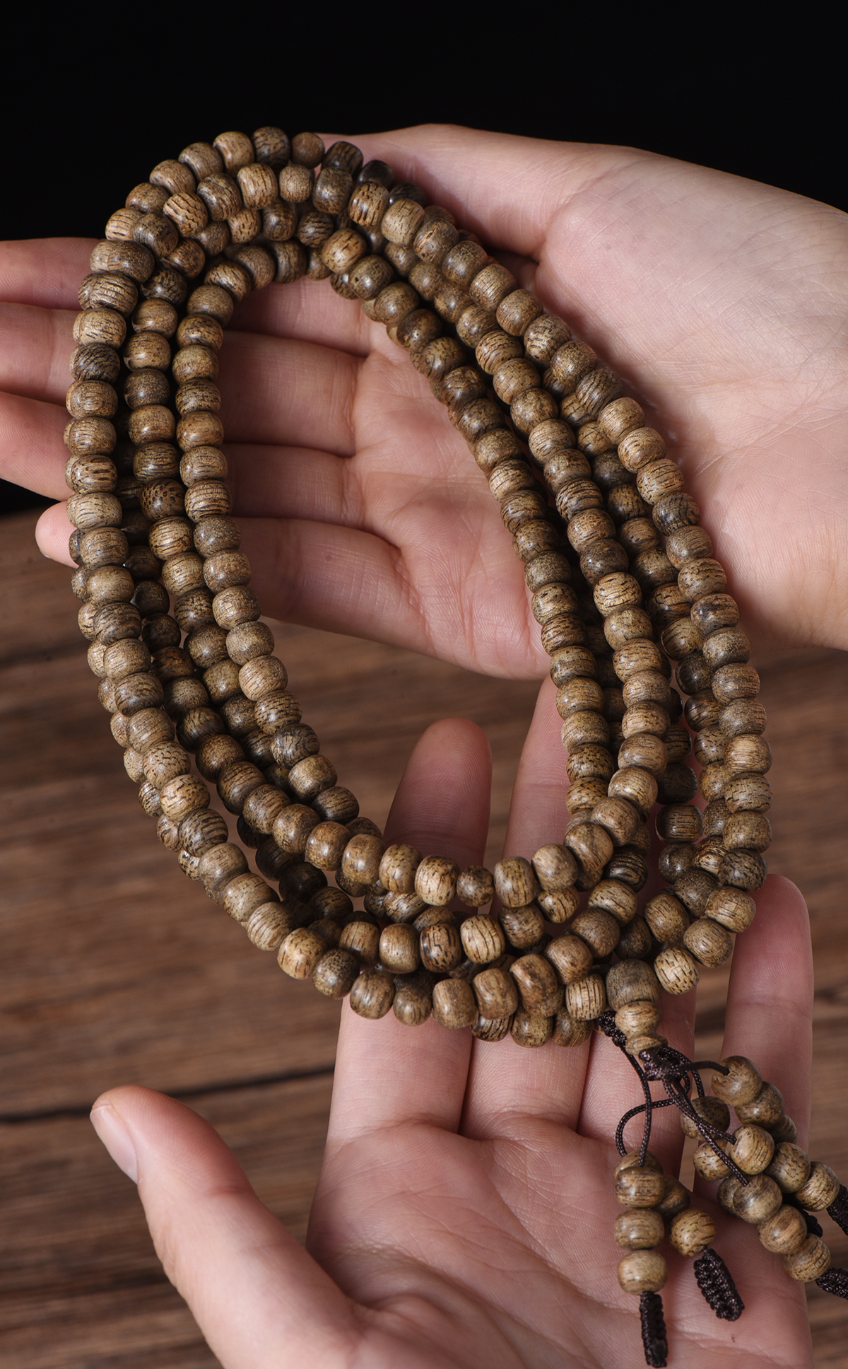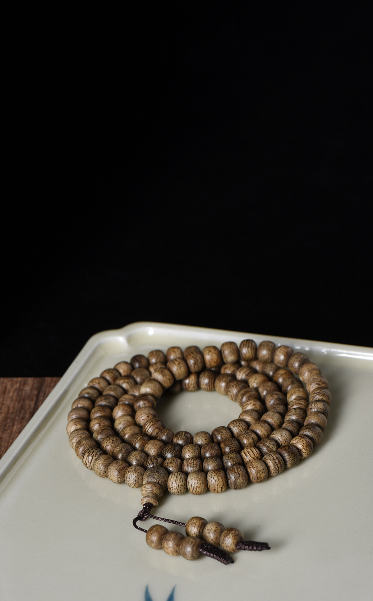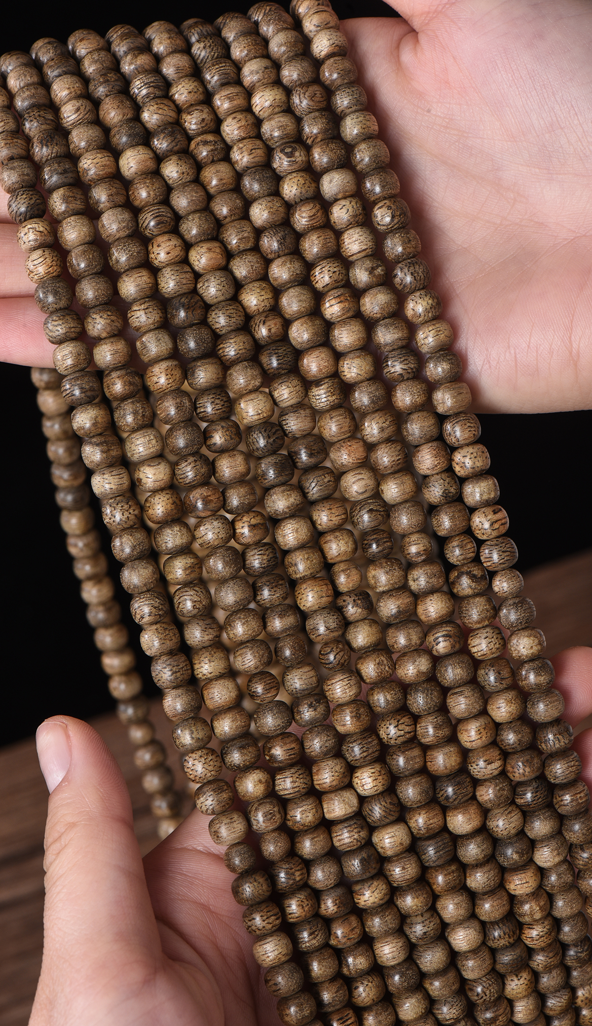 这款天然达拉干沉香桶珠,就是这样一份藏着时光沉淀的心意——老料新切,香韵醇厚
