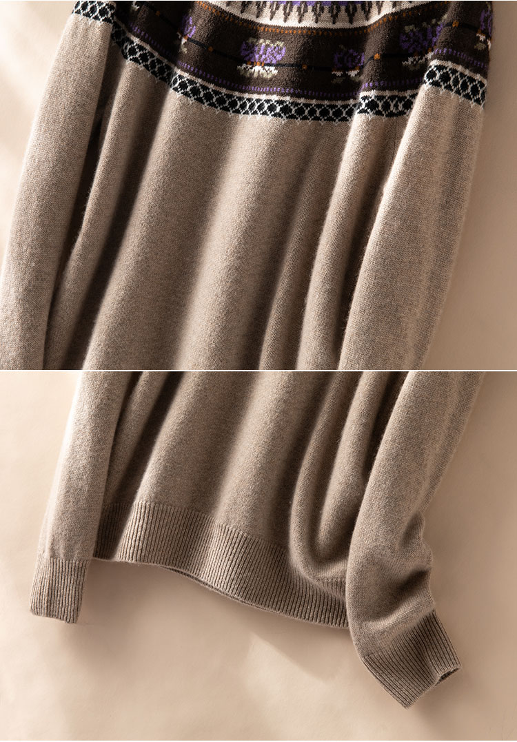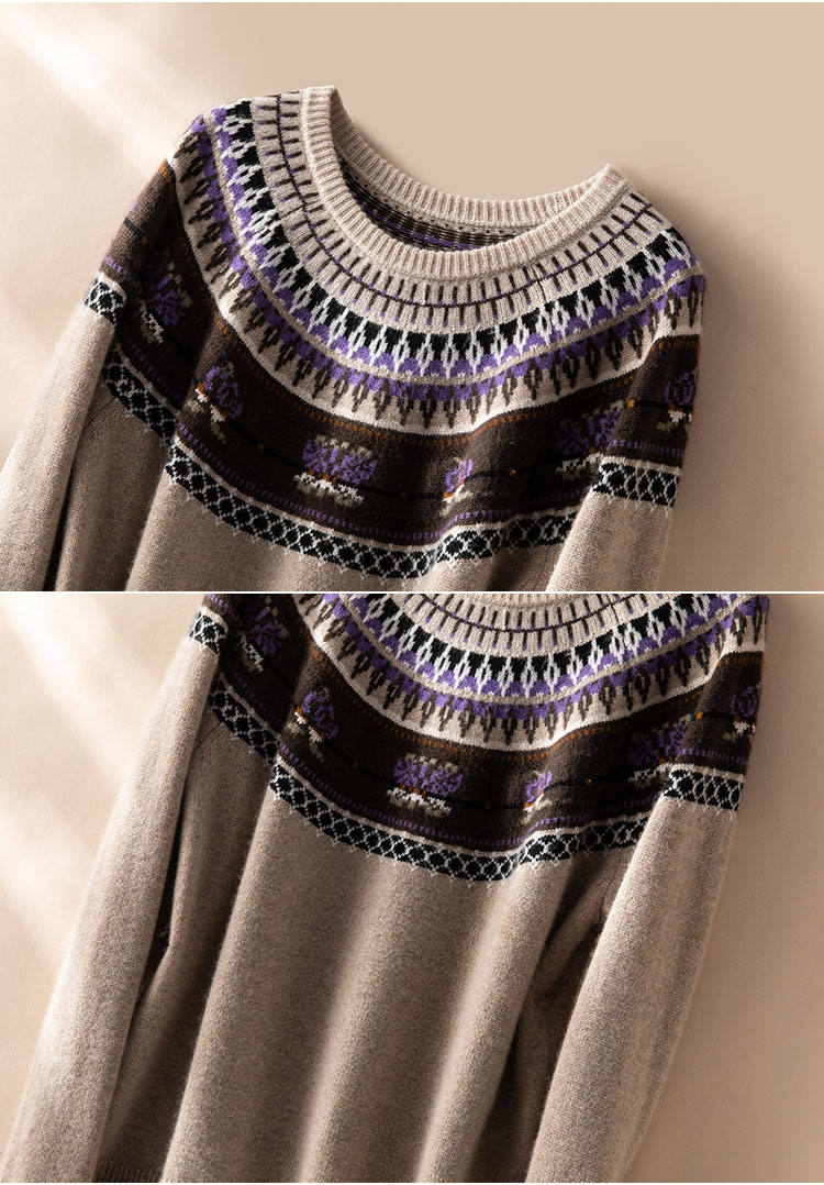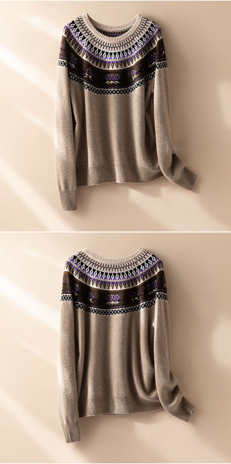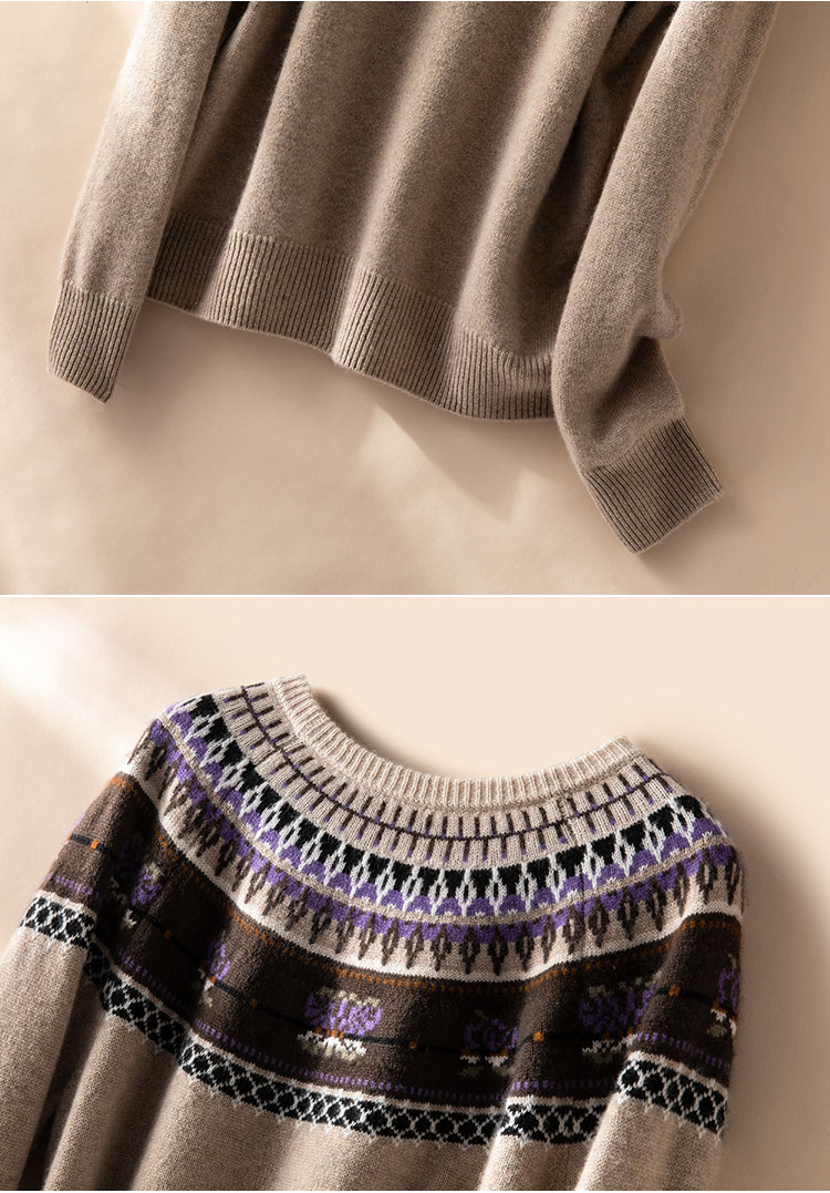 100%Baby小山羊绒~圆领费尔岛提花加厚羊绒衫女BABY250494